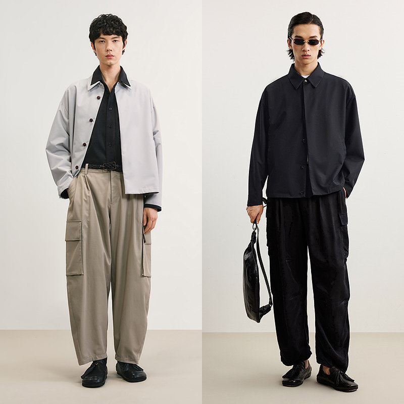 速写男装早春新款男士外套工装夹克翻领短款外套简约时尚优雅感