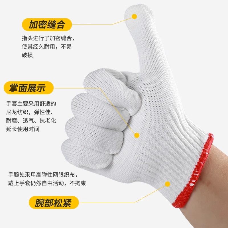 尼龙手套劳保耐磨棉线手套批发工作耐用男女干活劳动加厚工地建筑