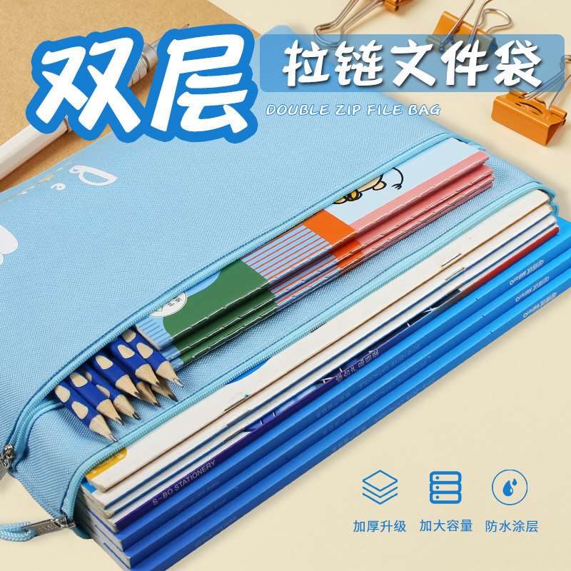 A4大容量资料袋学科科目分类拉链文件袋小学生a5卡通作业笔袋孕期单子孕妇多功能手提帆布文件袋防水加厚式