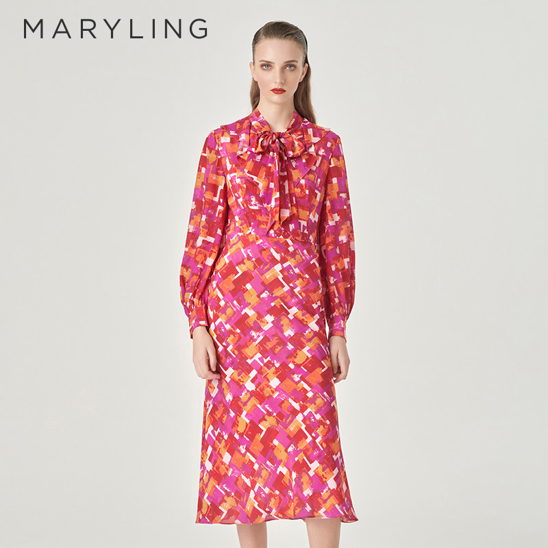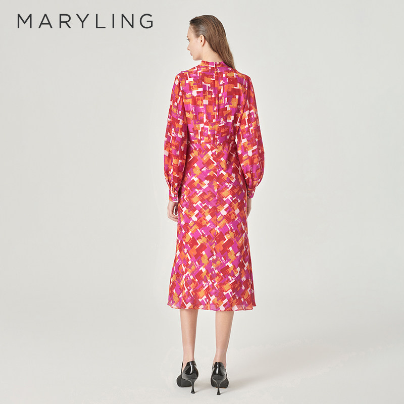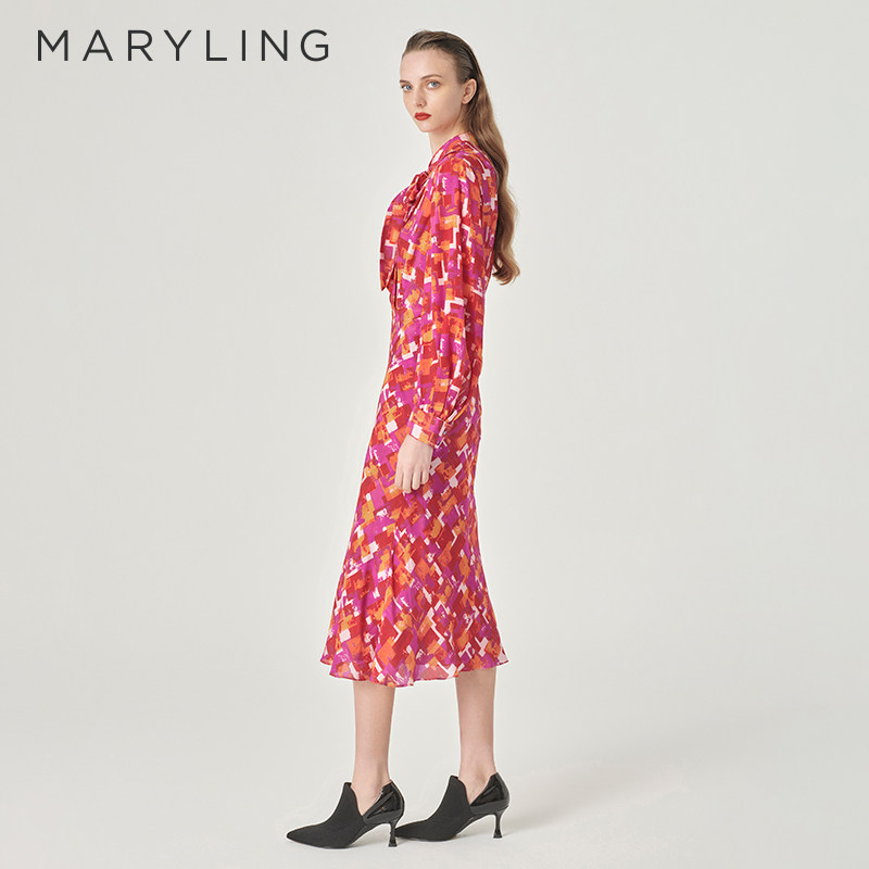 MARYLING玛俪琳24春新品【绯红胭脂】荷叶边鱼尾连衣裙A1EAW61040
