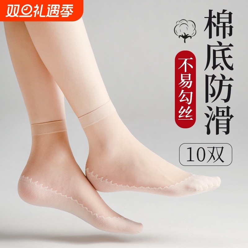 丝袜女短女士防勾丝袜子女夏季棉底防滑中筒袜水晶短筒吸汗隐形