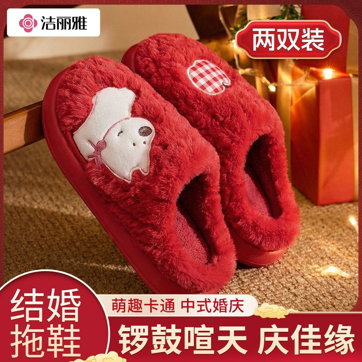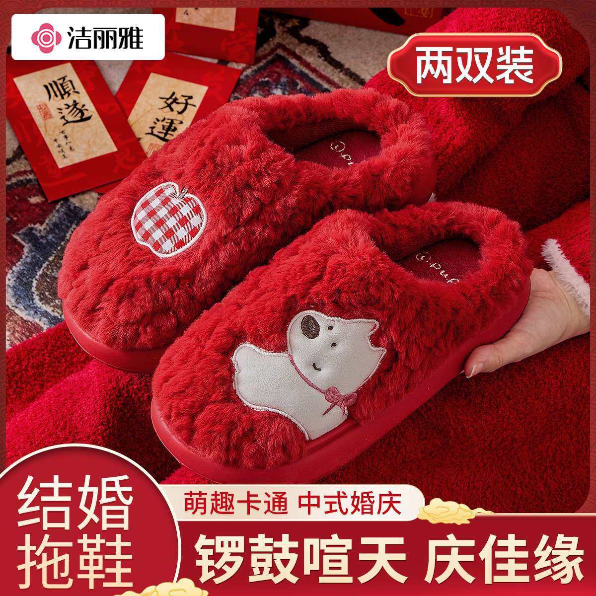 洁丽雅2双装结婚拖鞋高级感新婚情侣款新郎新娘陪嫁喜庆红色婚鞋