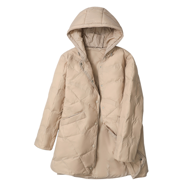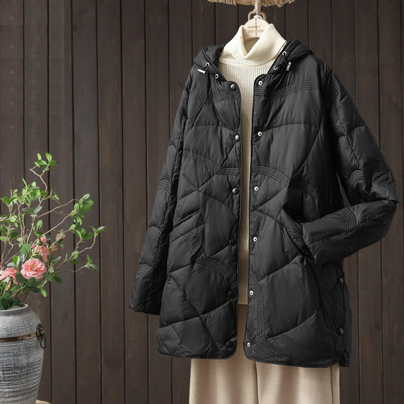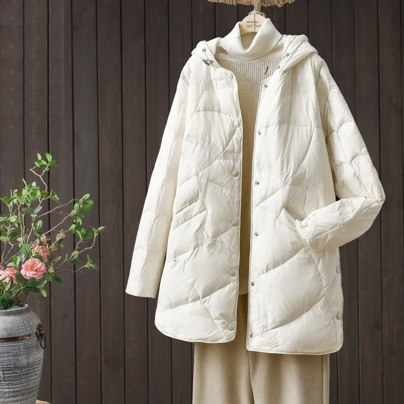 冬季大码轻薄羽绒服女2024年新款200斤中长款白鸭绒宽松薄款外套
