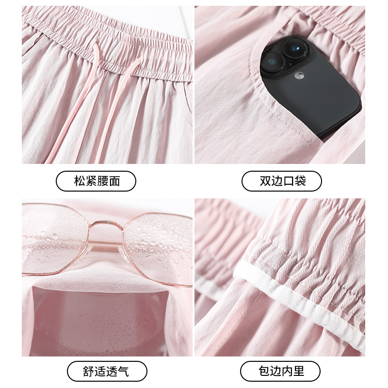 冰丝七分薄款短裤女款夏季2026新款小个子宽松显瘦运动速干哈伦裤