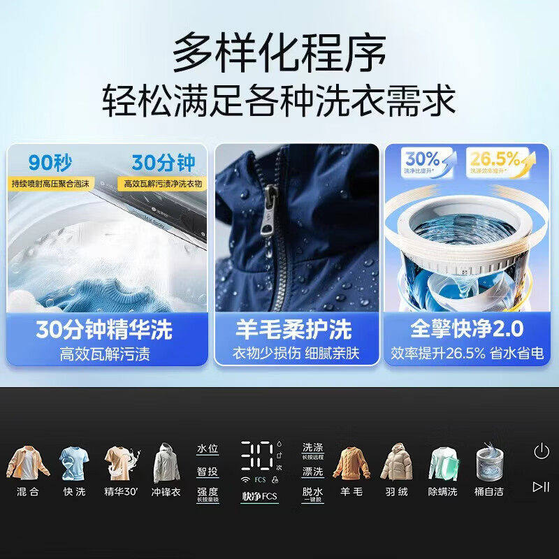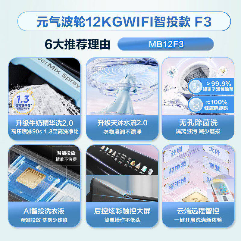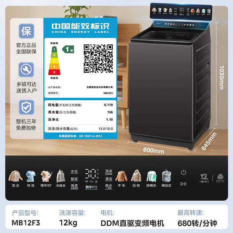美的元气10/12kg大容量直驱变频全自动家用除菌螨防缠波轮洗衣机