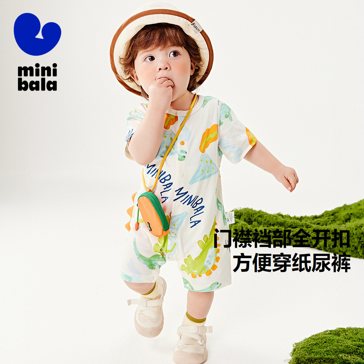 【纯棉】迷你巴拉巴拉恐龙连体衣外出爬服婴儿衣服宝宝包屁衣夏季