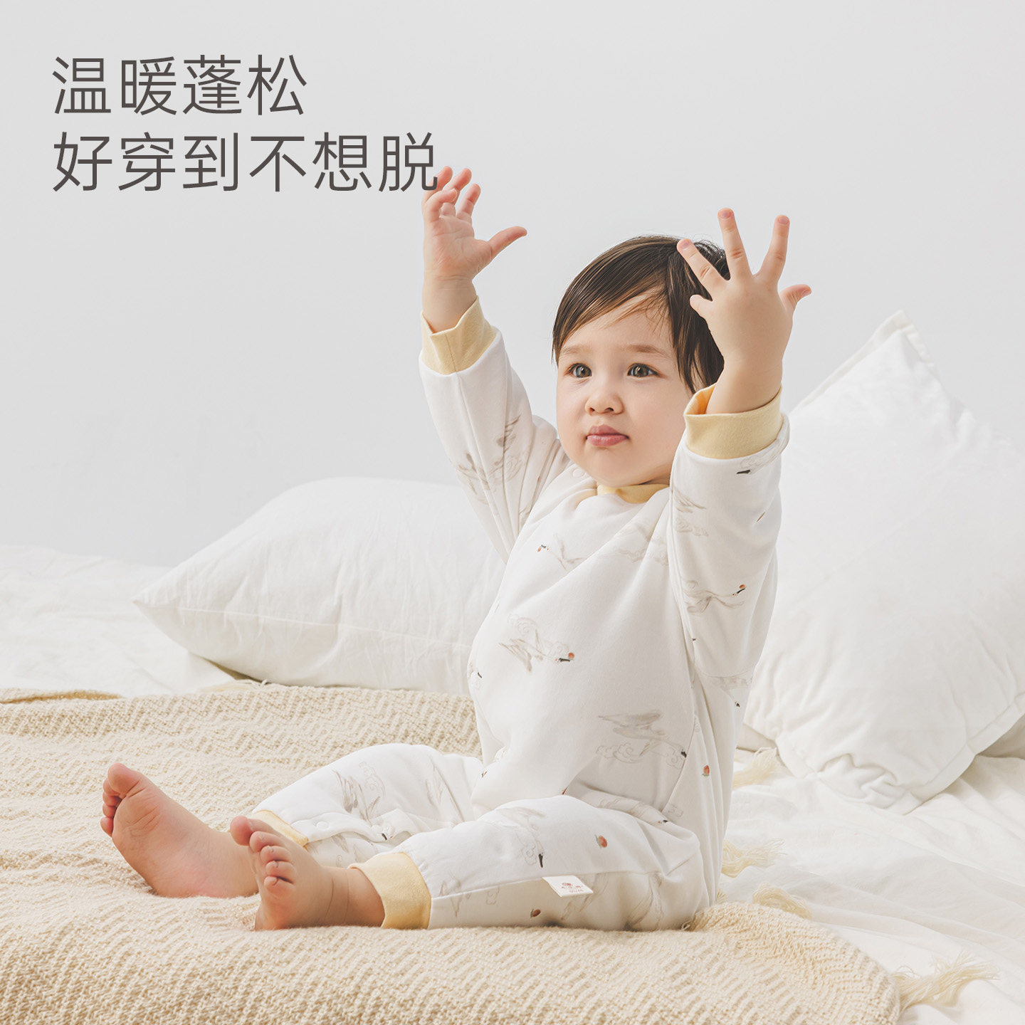 贝肽斯婴儿薄夹棉连体衣冬装外出新生幼儿宝宝衣服保暖空气棉睡衣