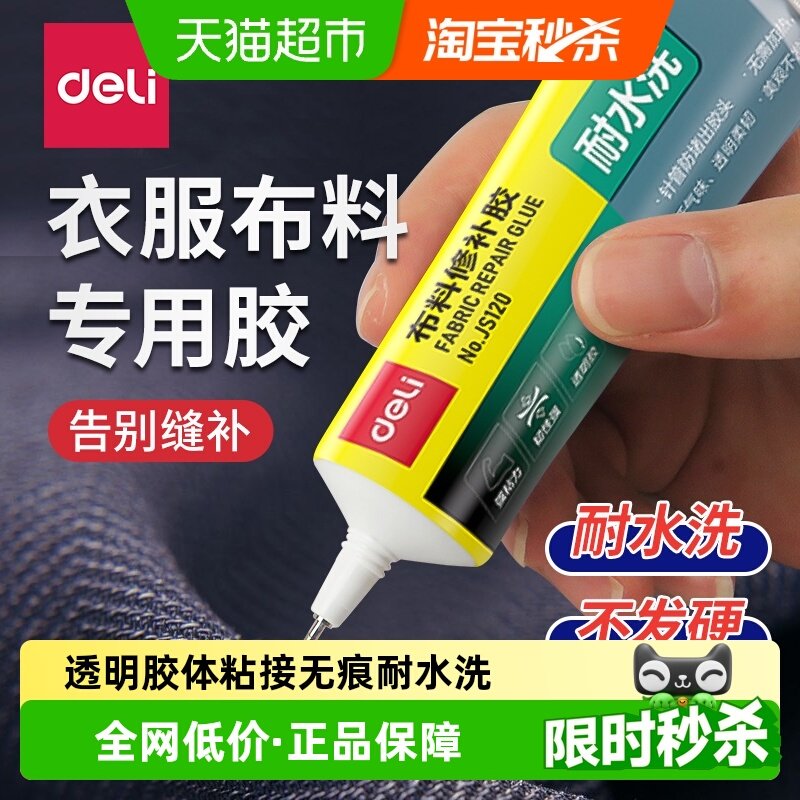 得力衣服胶水专用强力修补胶粘羽绒服logo布料胶软性防水布艺粘合