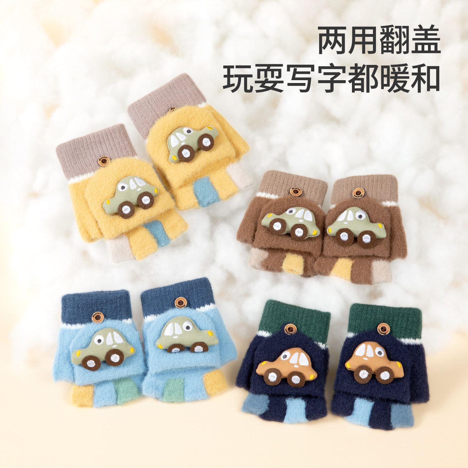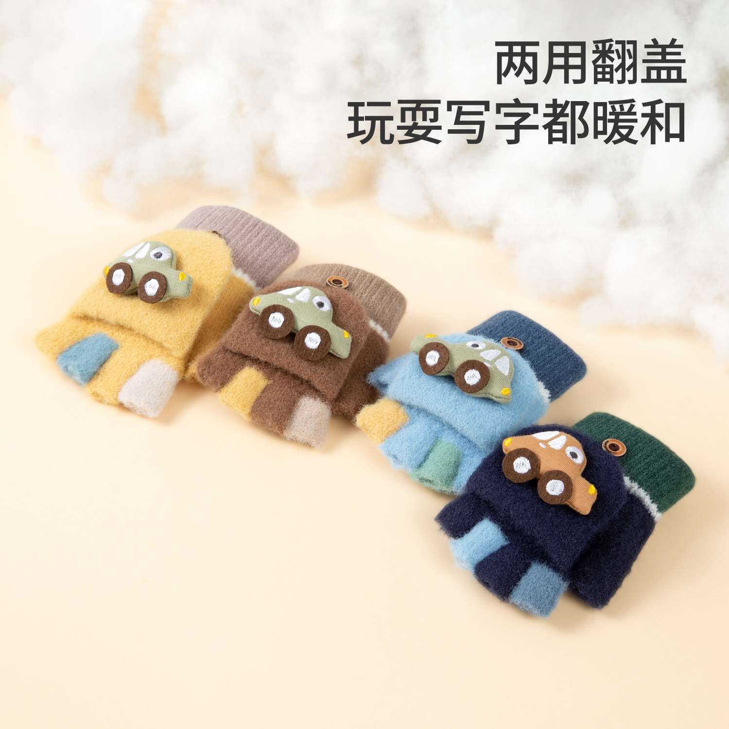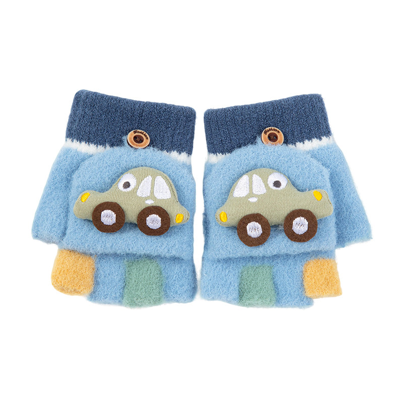儿童保暖手套男孩冬天幼儿小童2岁3岁宝宝秋冬季男童半指翻盖写字
