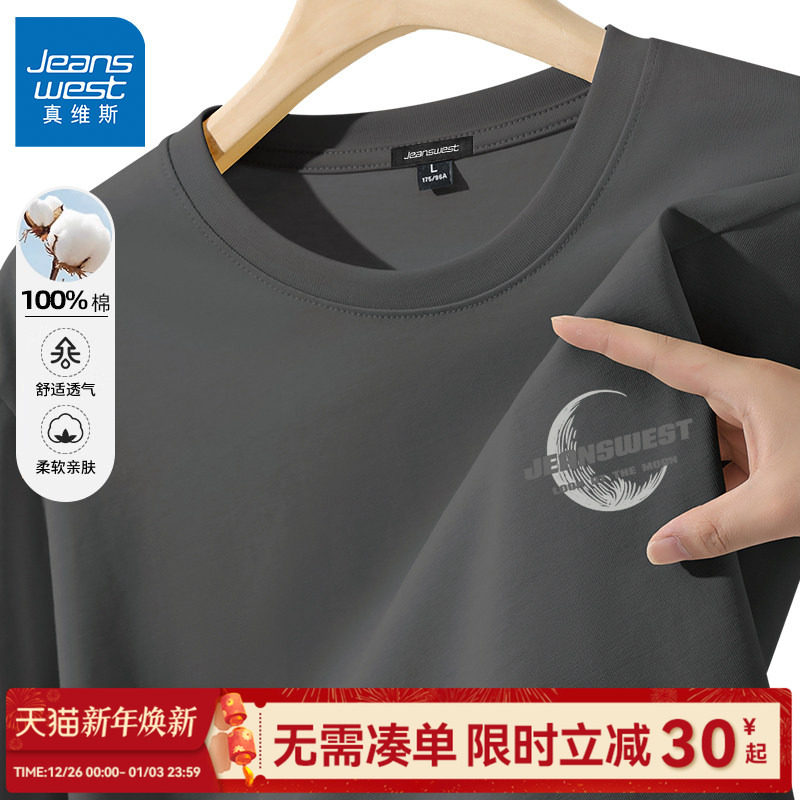 GV真维斯纯棉长袖t恤男2024新款美式oversize春秋大码男士打底衫C