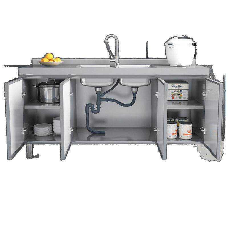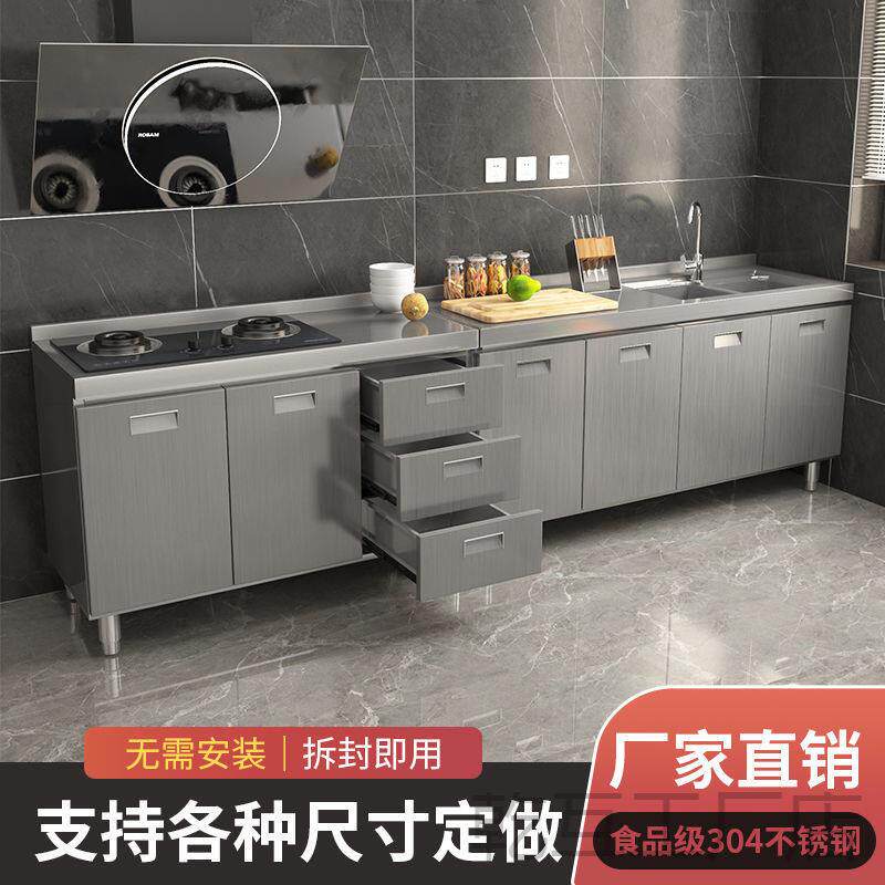 304整体全不锈白钢厨房橱柜简易灶台一体储物收纳碗柜家用小户型