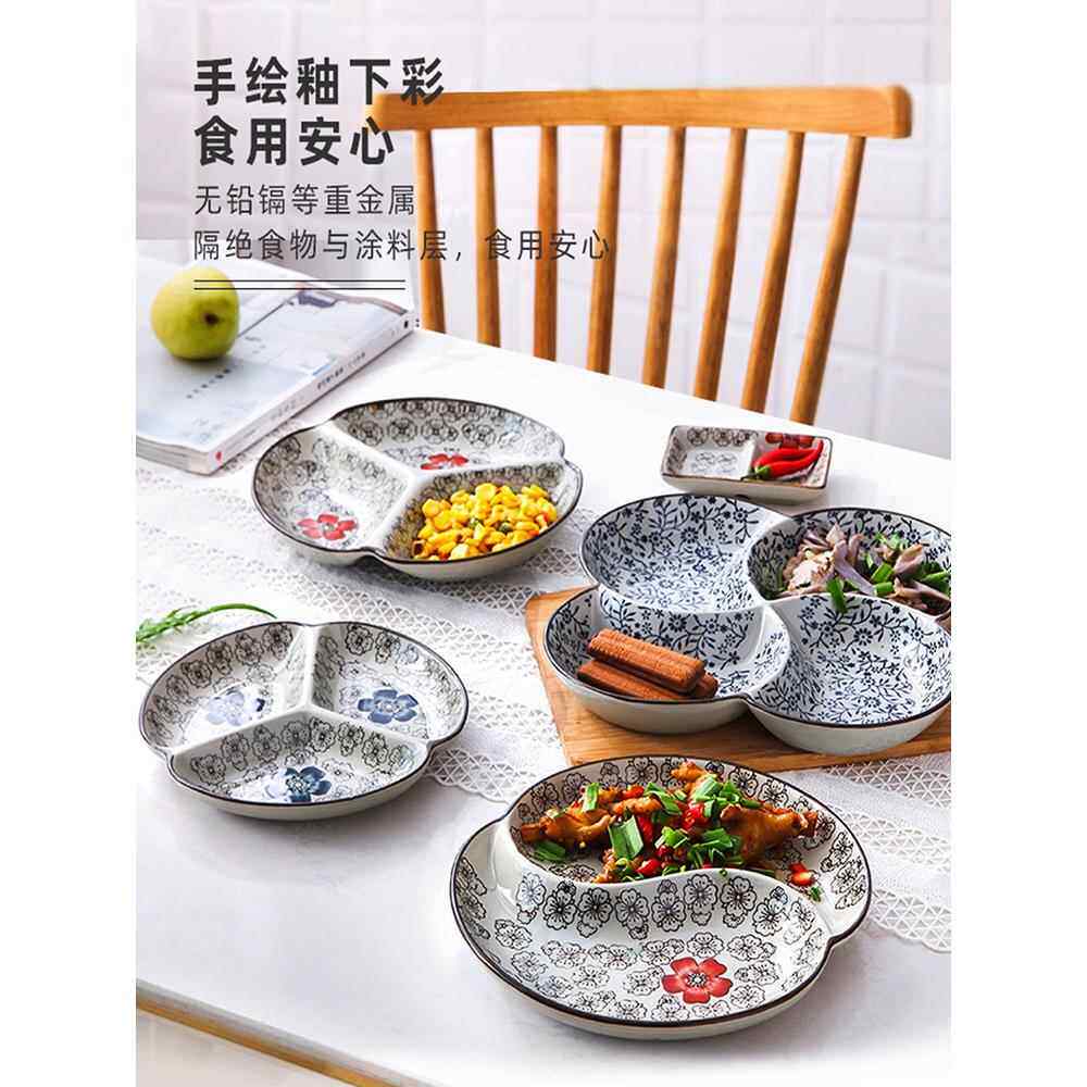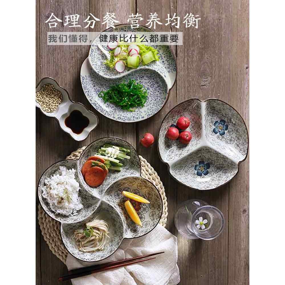 奶油风加深陶瓷分格盘碗大人减脂定量个人专用三格盘分隔餐盘带盖