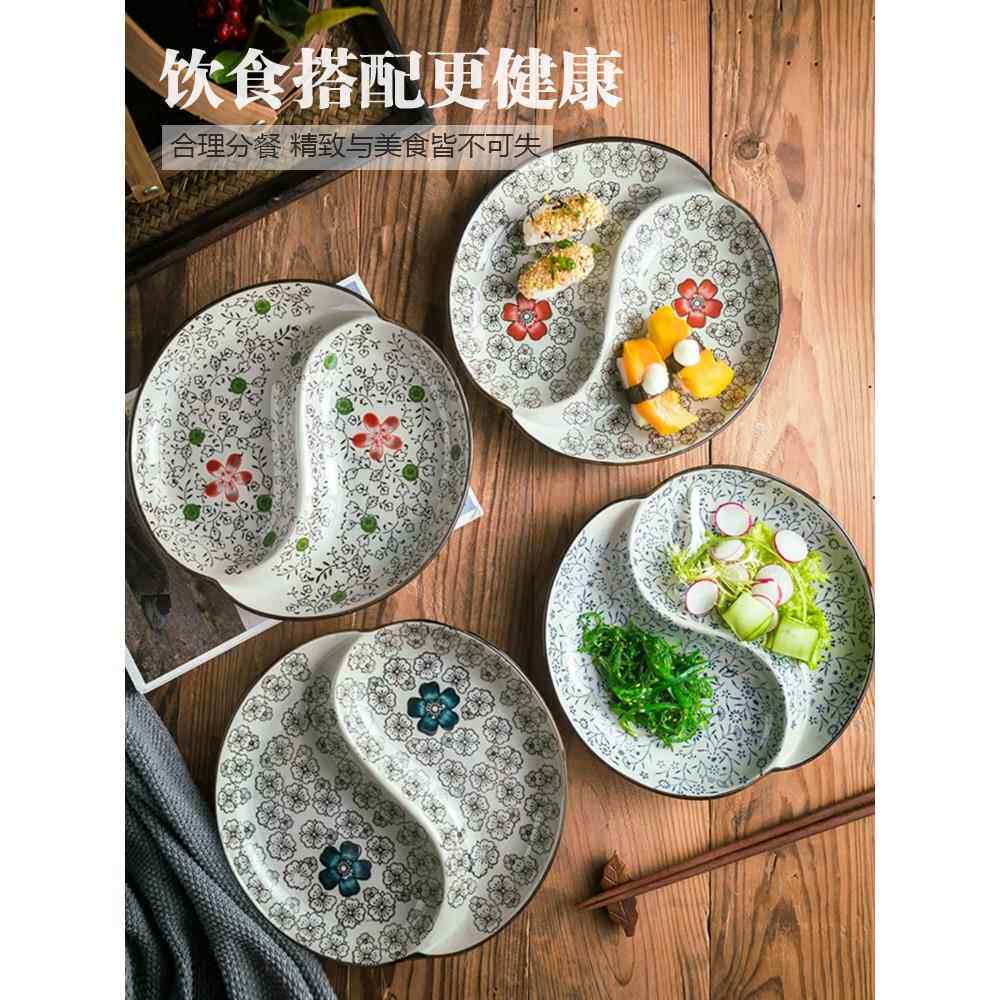饺子蘸料碟子日式和风6寸双格碟 陶瓷两格碗调料碟火锅料理碟酱油