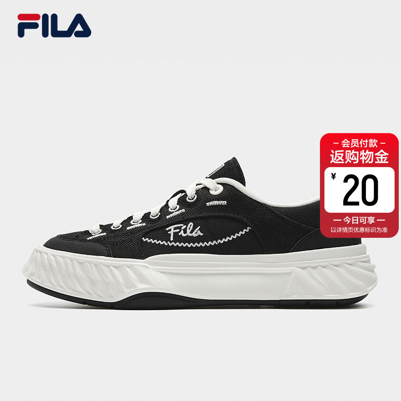 岩行帆布鞋|FILA 斐乐男FOSSO1+网面黑色轻便透气板鞋运动休闲鞋