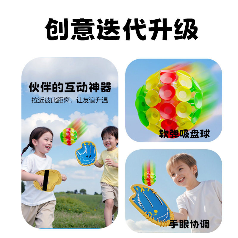 夜光趣味吸盘抛接球室内户外运动双人亲子互动球拍儿童玩具手抛球