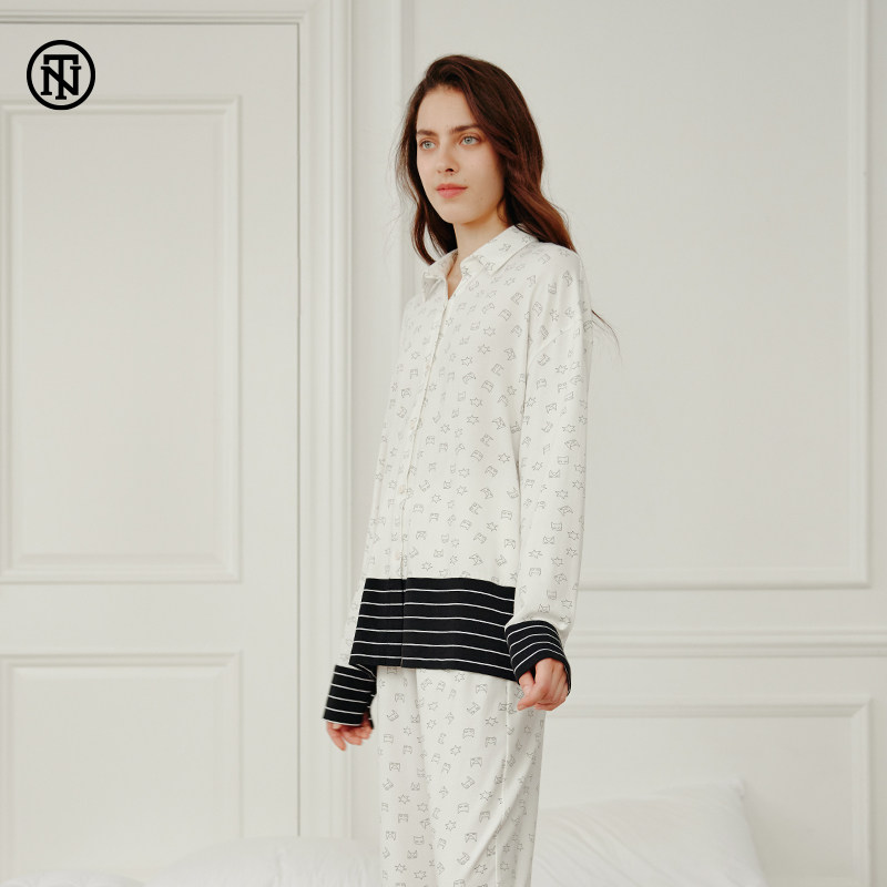 NoirTease奈黎诗春秋薄款睡衣女棉质长袖家居服两件套装睡衣女秋