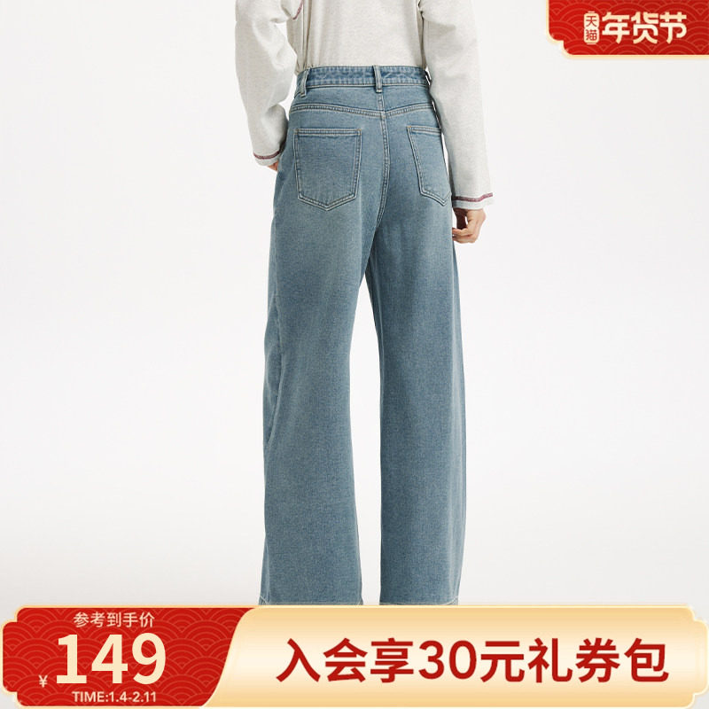 森马牛仔裤女冬加绒做旧长裤女生保暖显腿长ins潮街头复古直筒裤