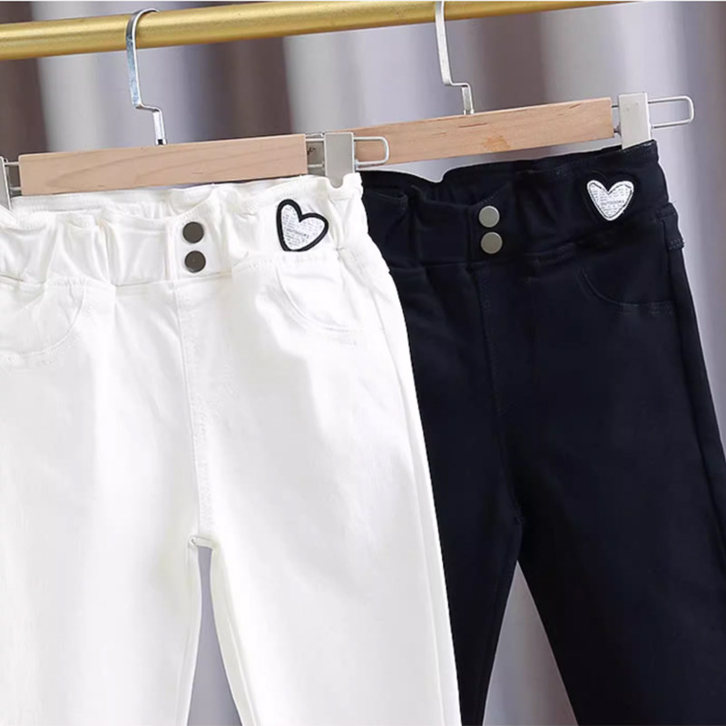 女童春秋小脚裤弹力修身魔术裤2025新款黑色裤子夏白色铅笔牛仔