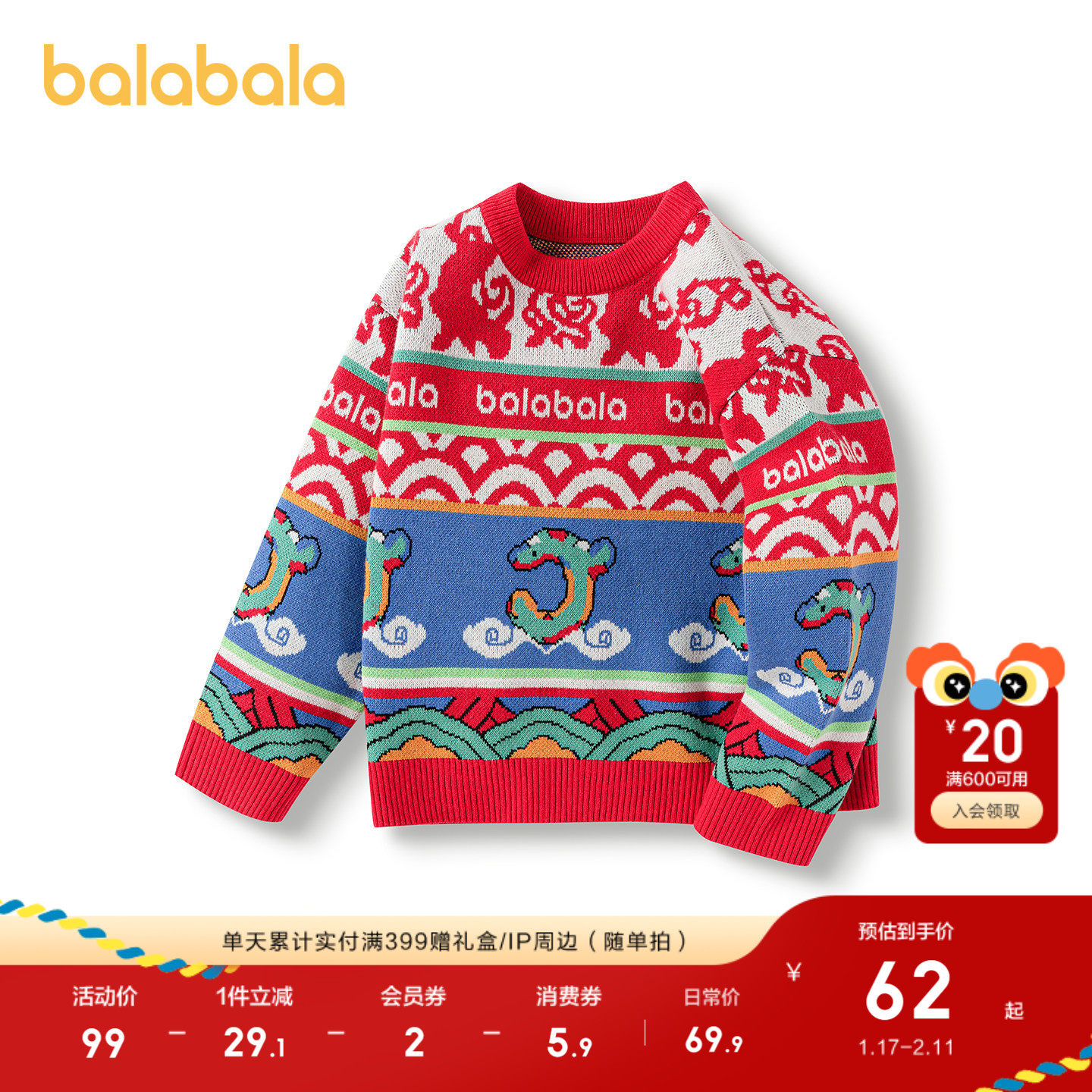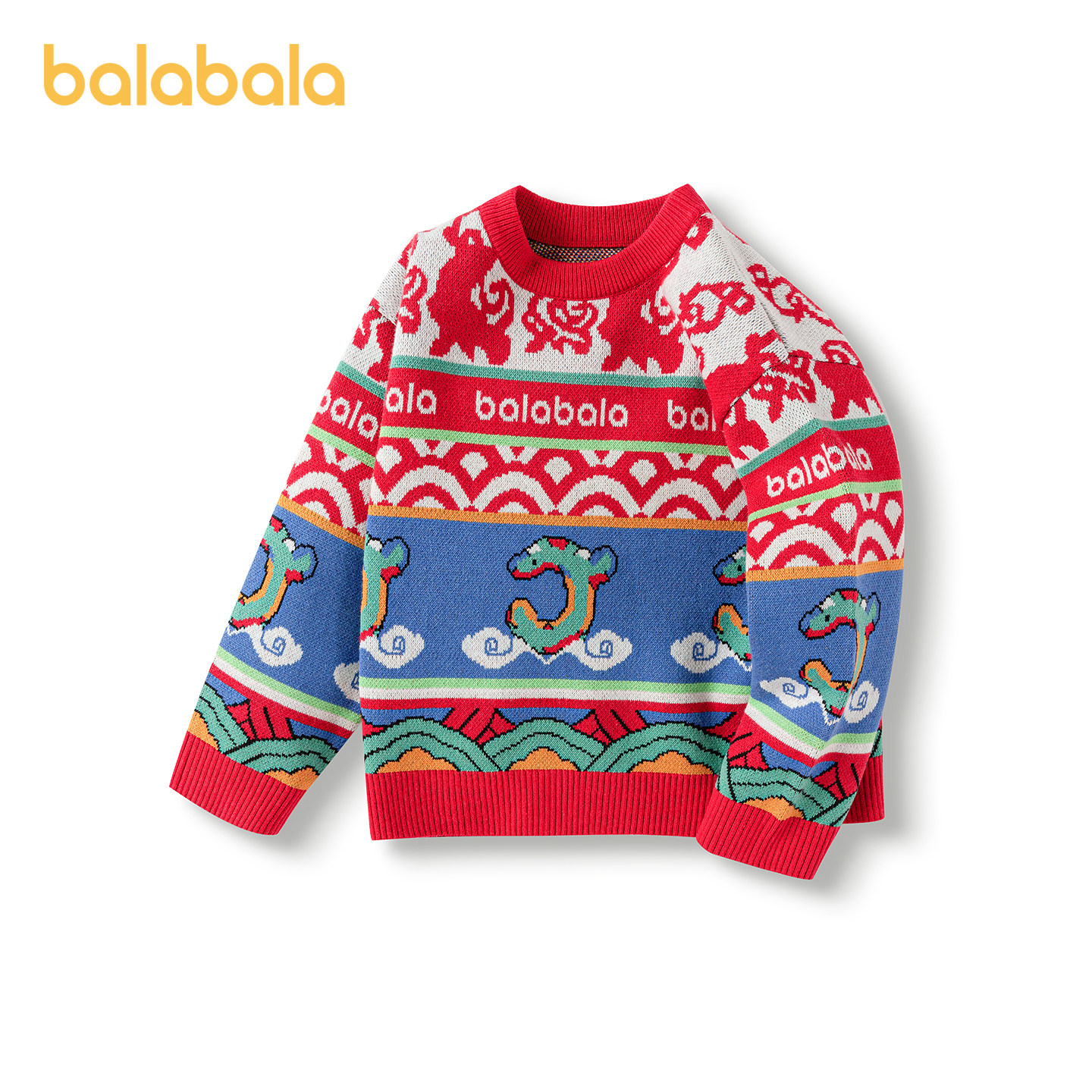 巴拉巴拉童装男童毛衣儿童新款秋冬装针织红色拜年服