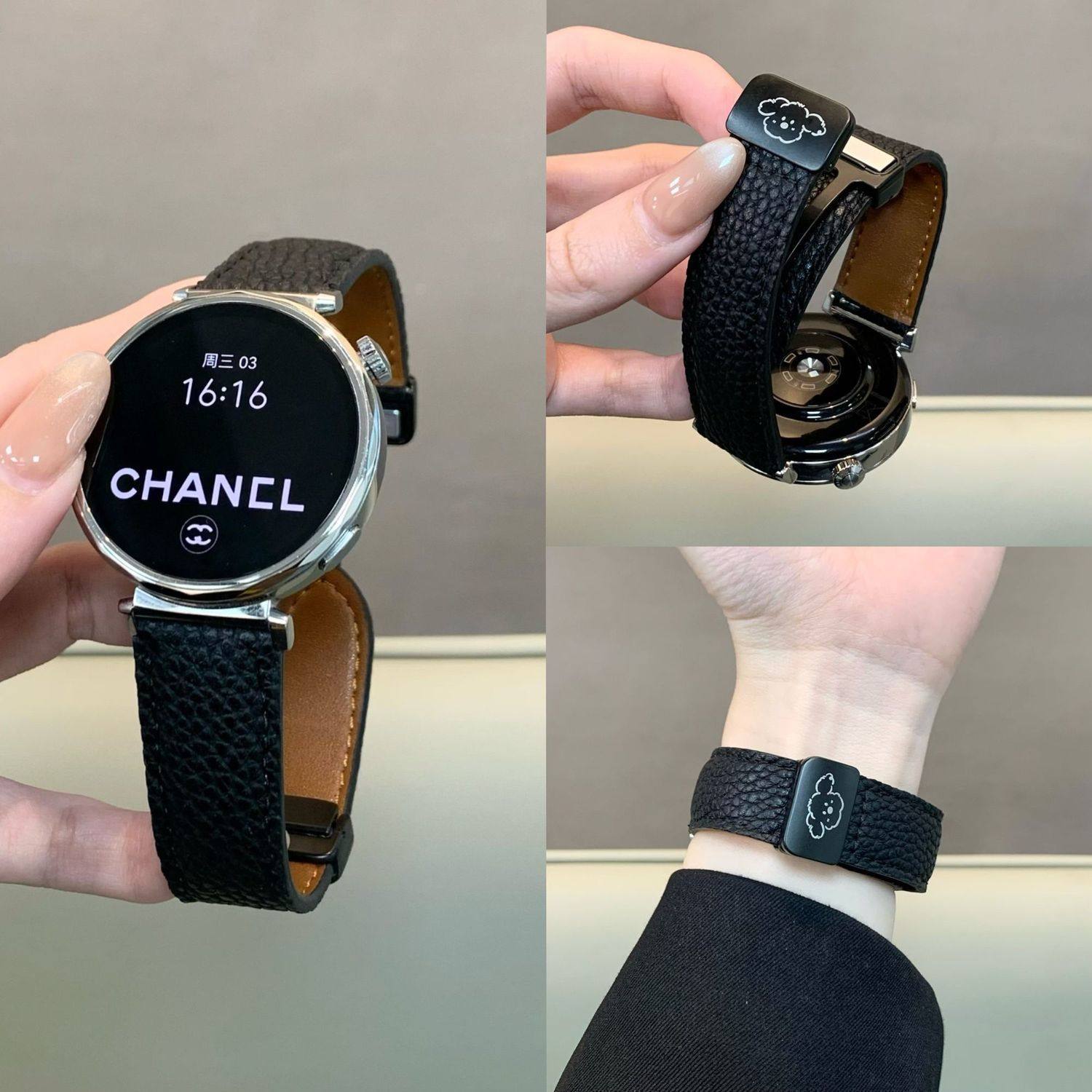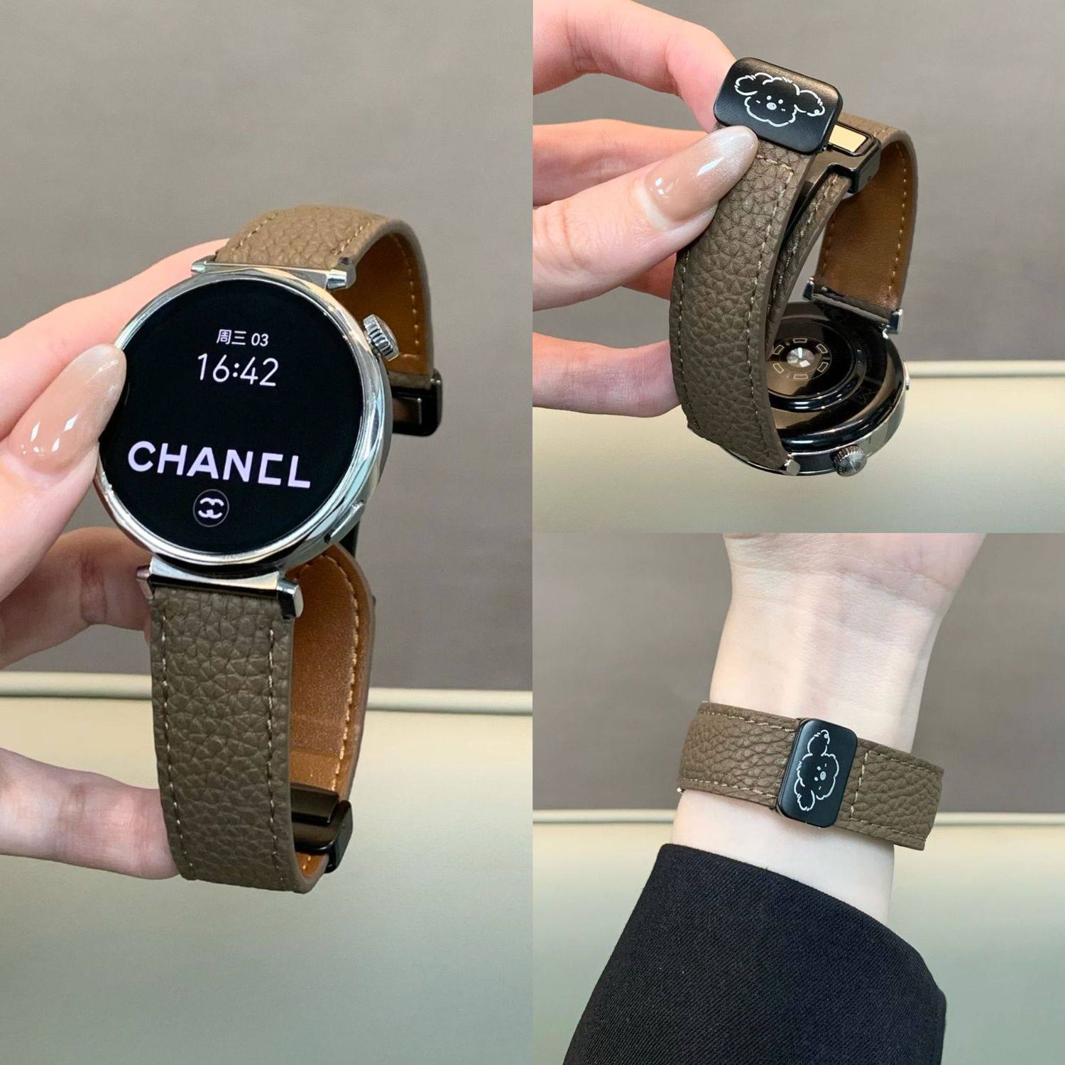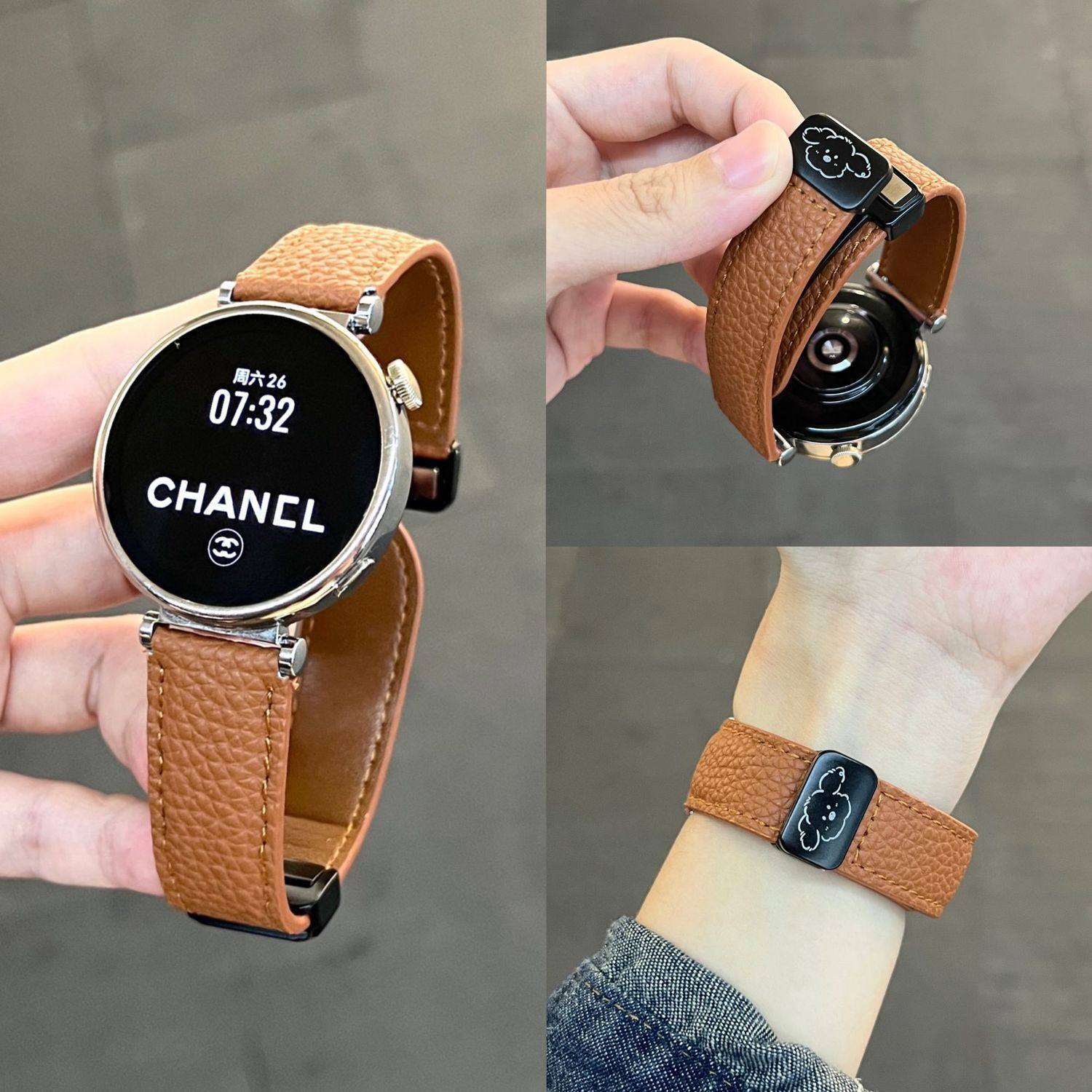 适用华为GT6手表表带gt5真皮GT6pro磁吸折叠扣荔枝纹watch5女士皮质41mm智能小米watchS4秋冬OPPOwatchX2mini