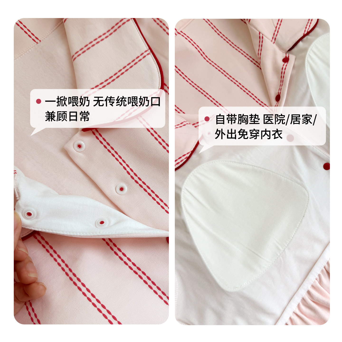 春秋纯棉带胸垫月子服医院待产裙产妇孕妇睡裙喂奶哺乳衣产前产后