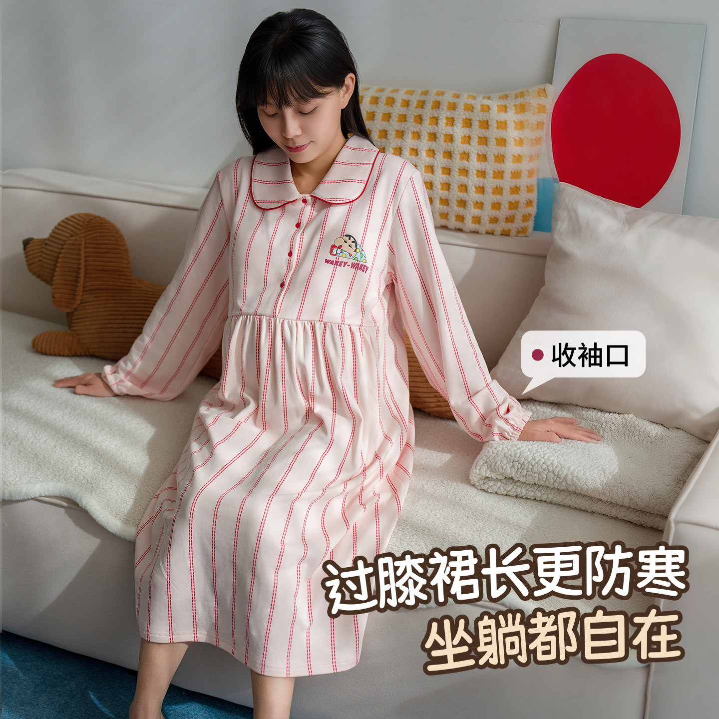 蜡笔小新&雅特茂孕妇秋冬哺乳睡衣产后月子服产妇产房待产连衣裙