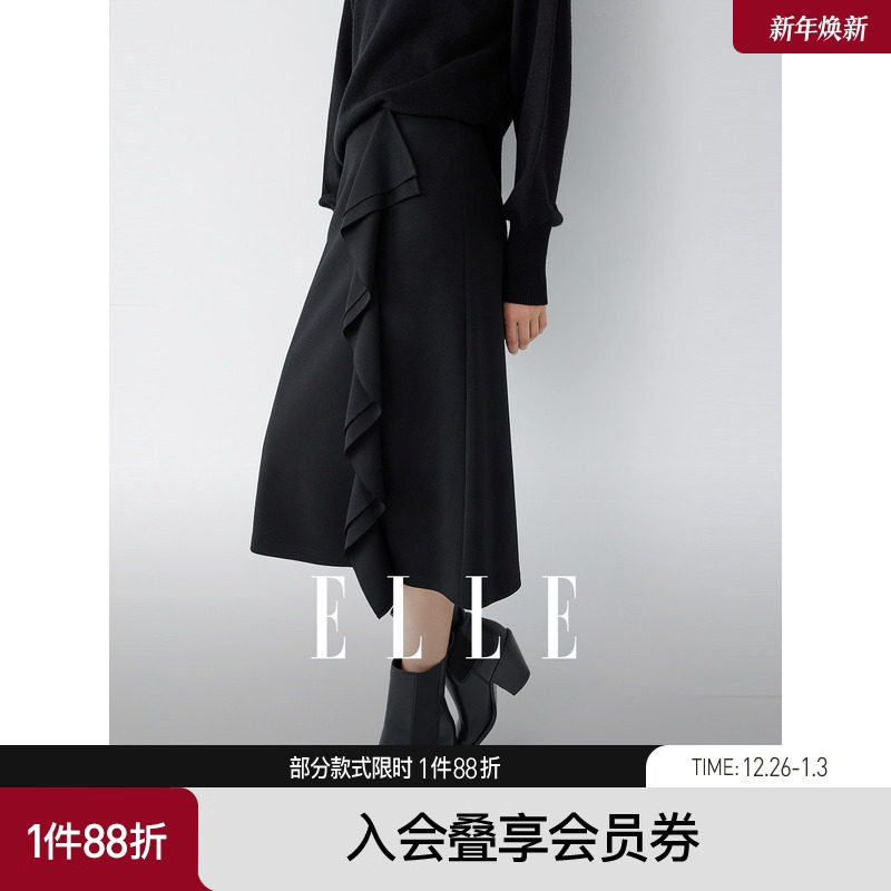 ELLE法式设计感荷叶边半身裙女2025秋季新款时髦优雅气质a字长裙