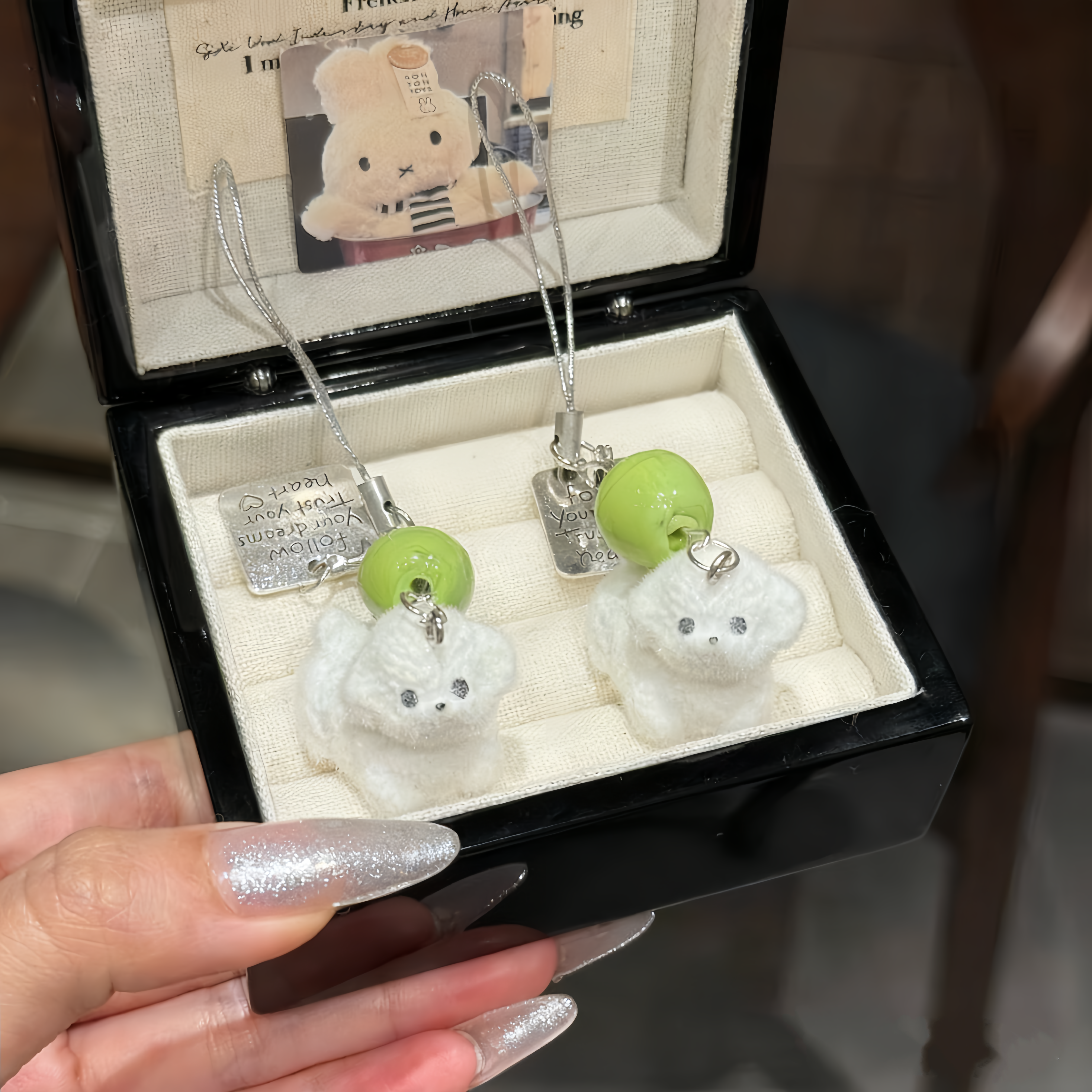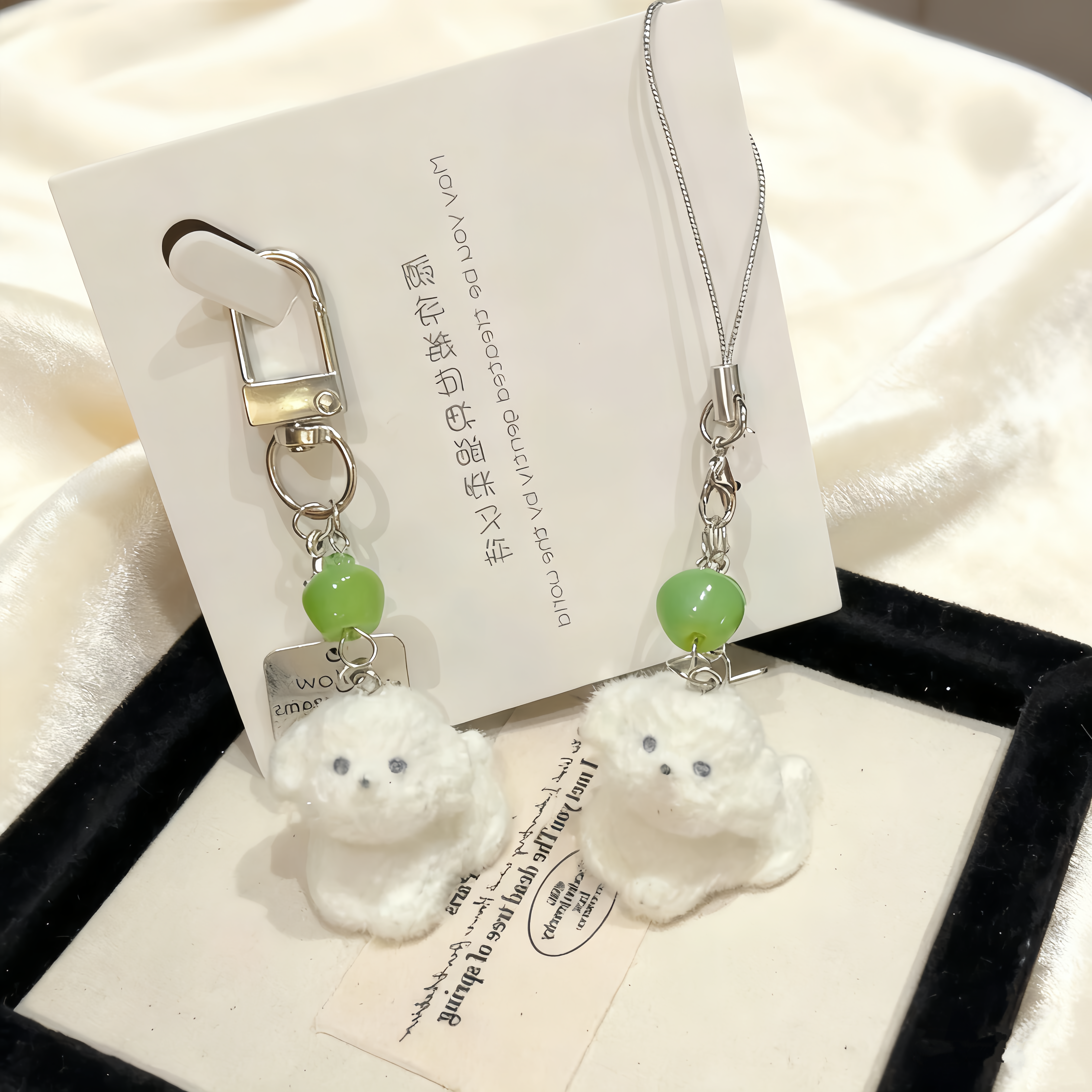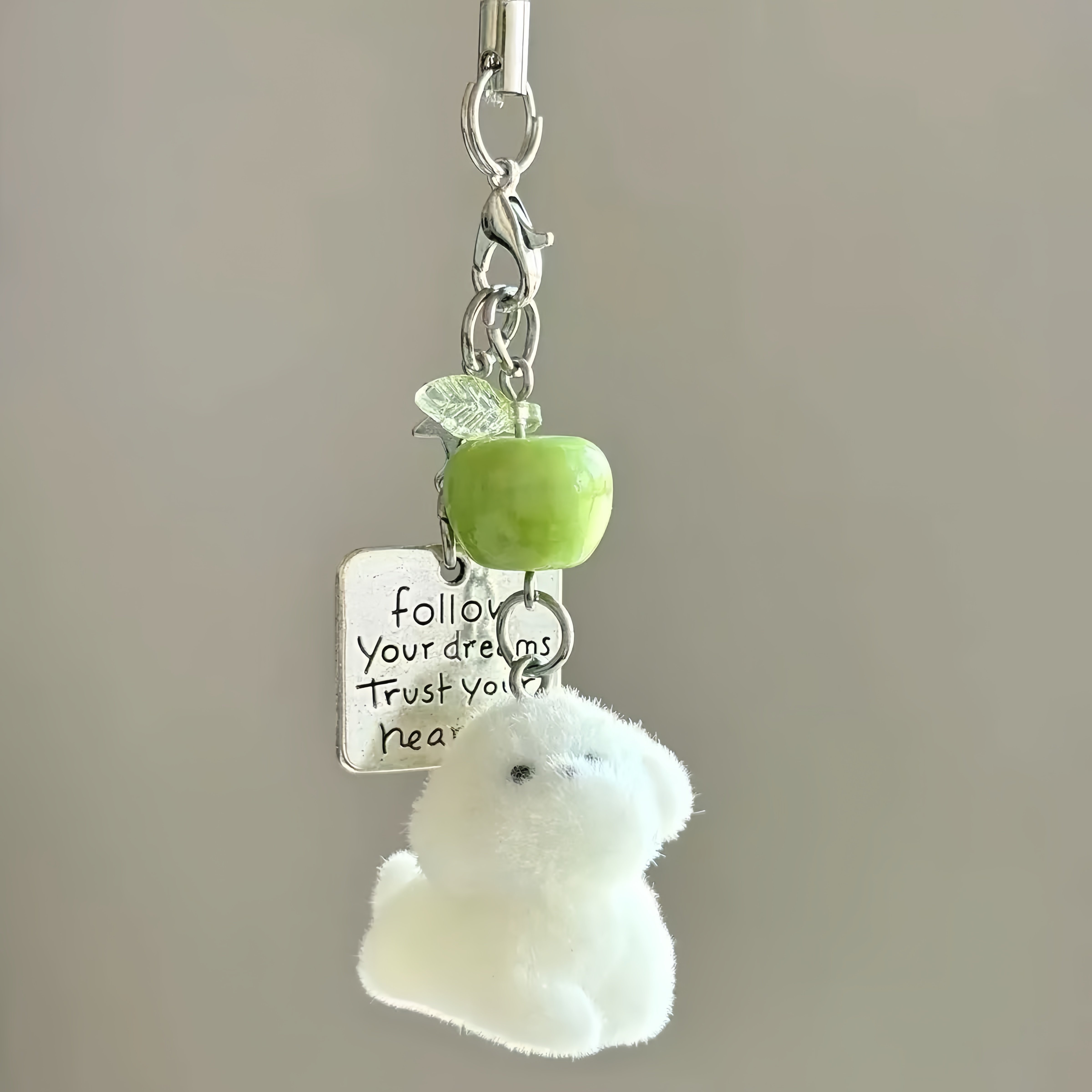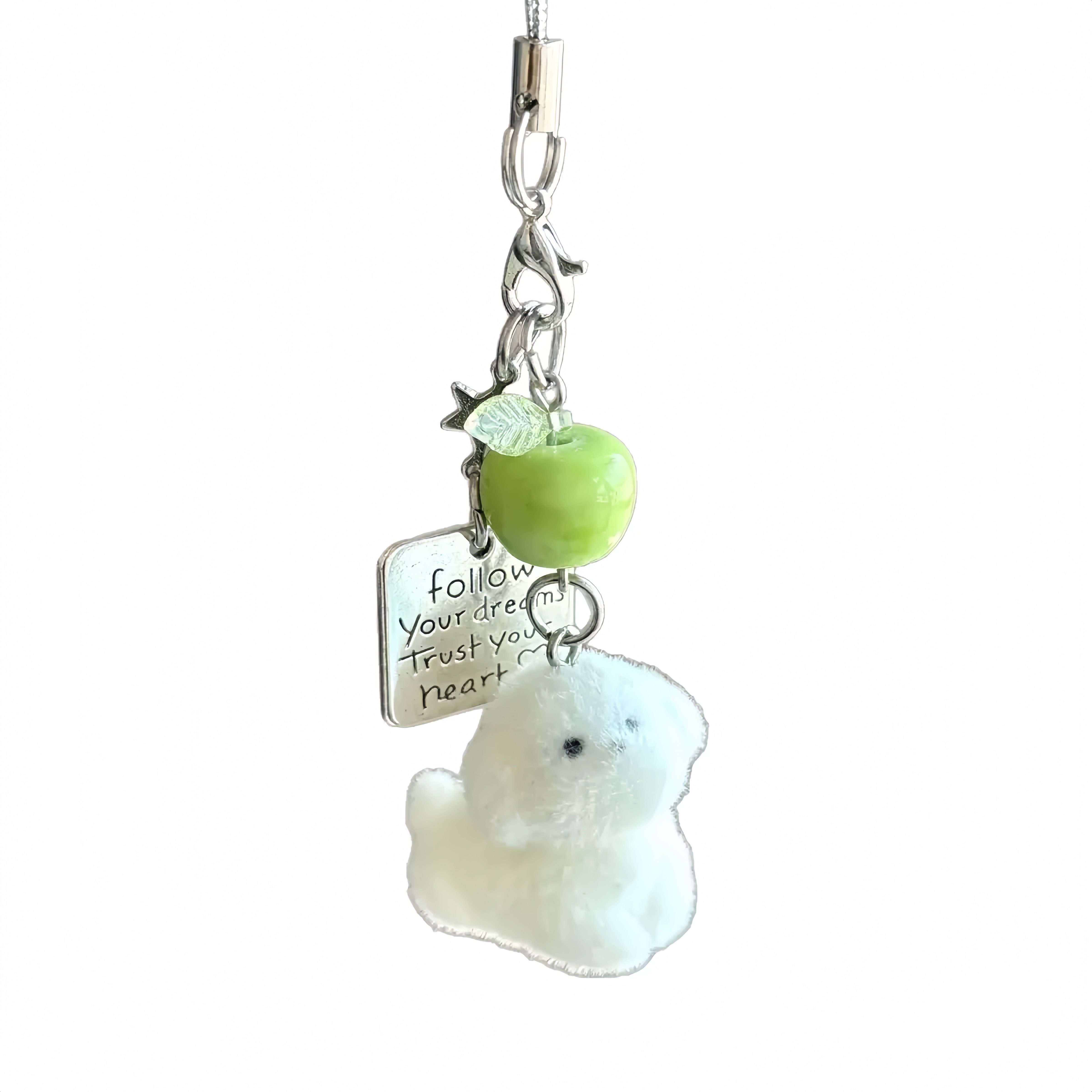 青苹果小狗植绒钥匙扣手机链可爱包包挂件手机挂饰公仔玩偶礼物女