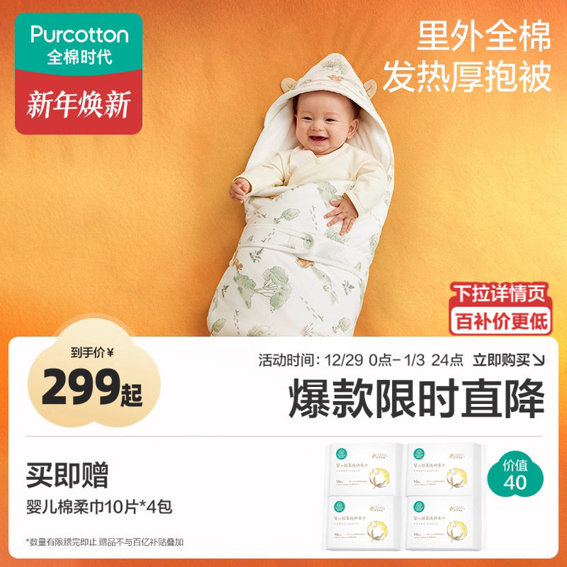 【新品】全棉时代婴儿包被秋冬季加厚款可脱胆初生宝宝纯棉抱被
