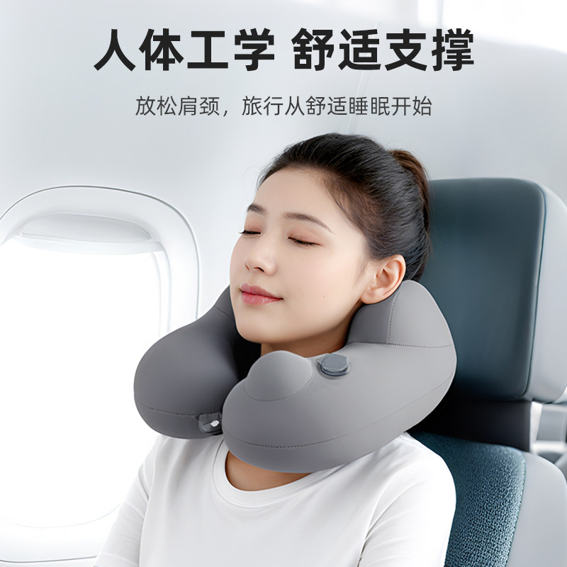 充气u型枕颈枕旅行便携飞机护颈头枕高铁长途睡觉神器按压u形枕头