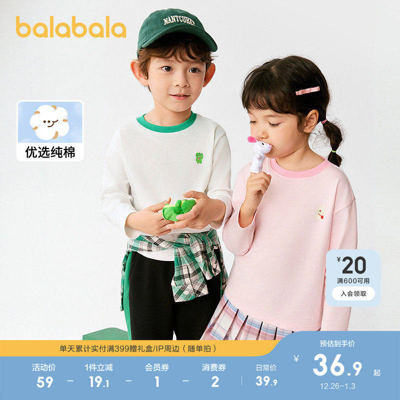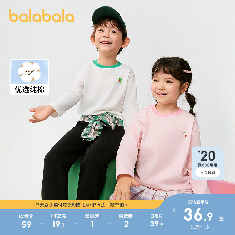 巴拉巴拉童装儿童长袖t恤男童女童2025新款春秋装纯棉百搭打底衫