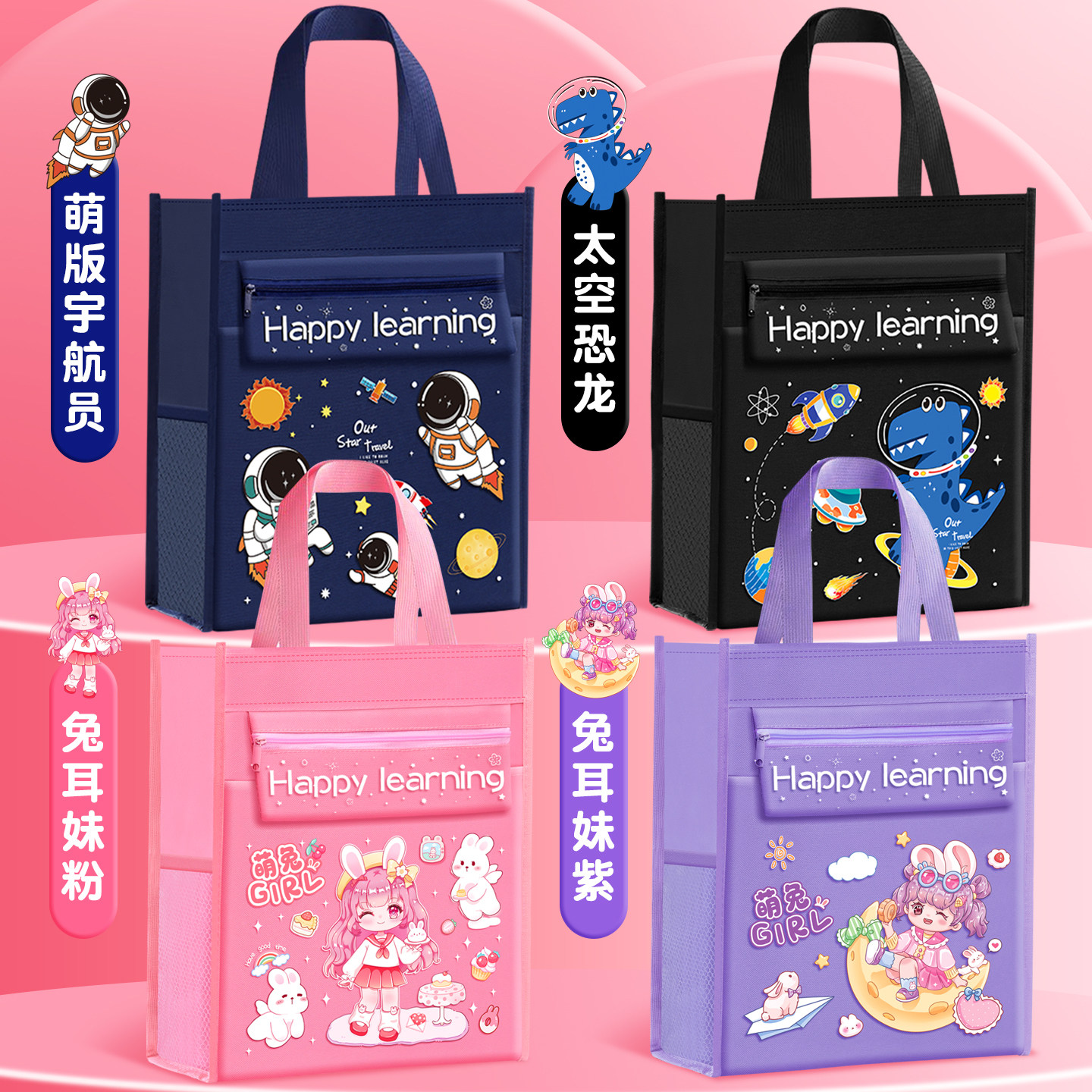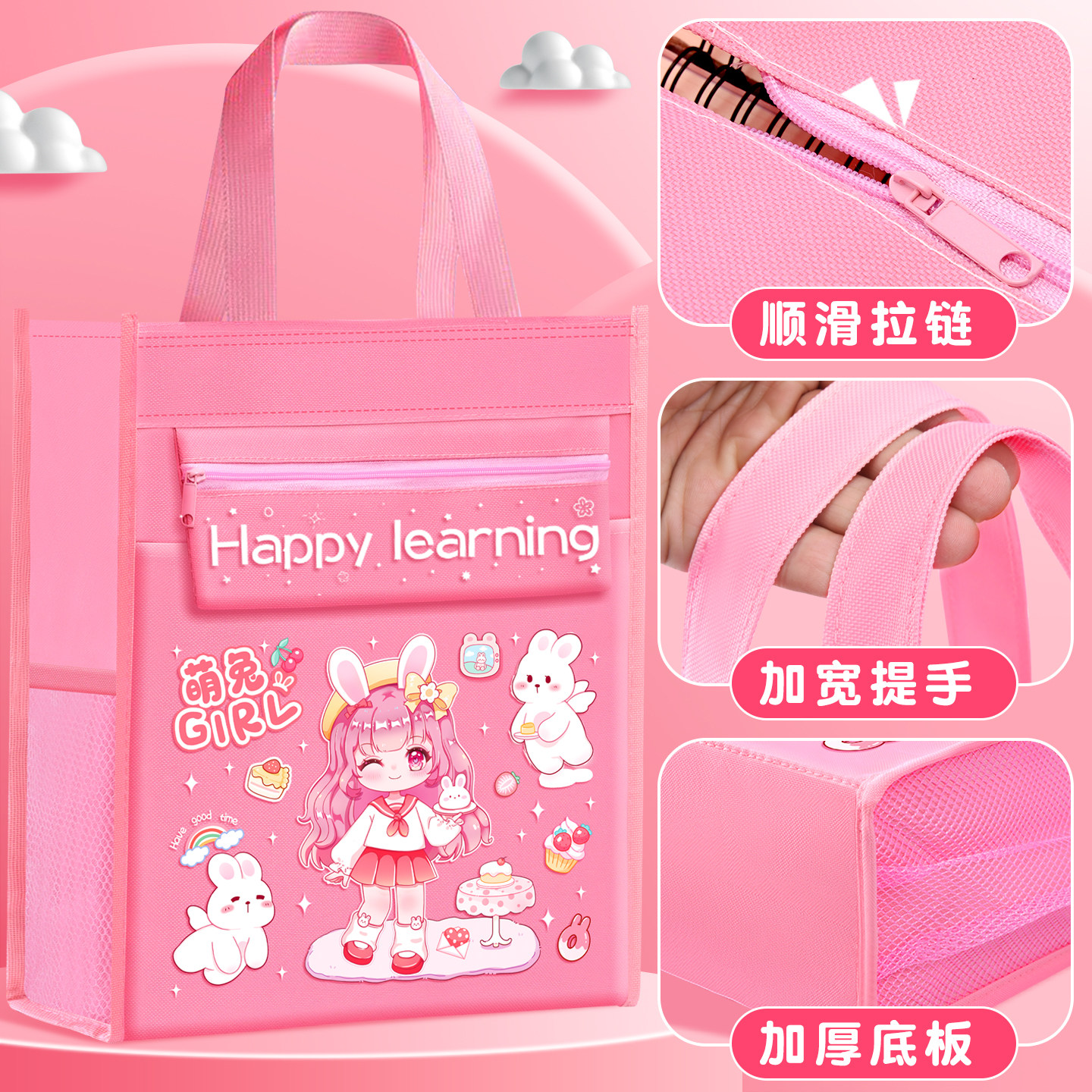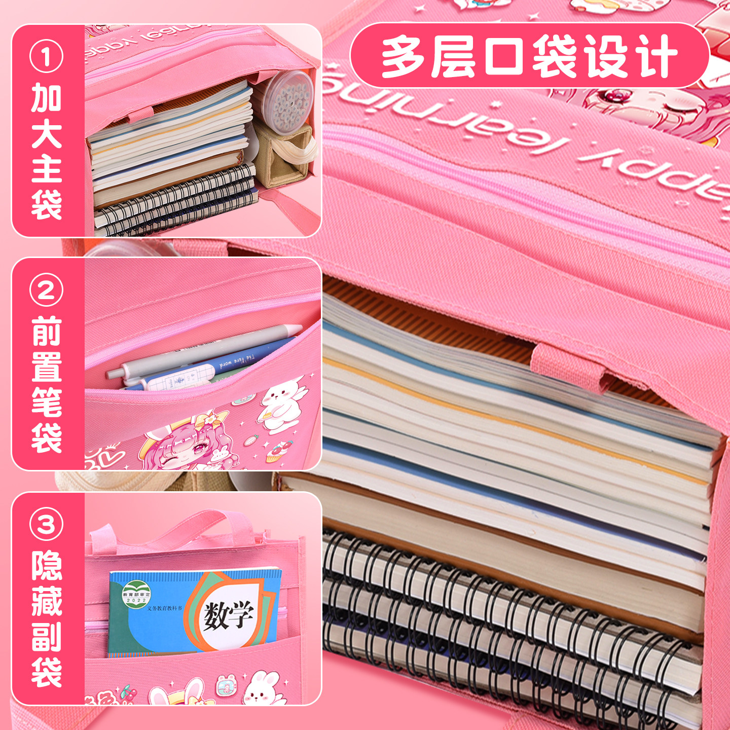 补习袋大容量手提袋拎书袋小学生用女童书包文件袋帆布美术袋女孩补习班作业文件试卷袋收纳袋儿童学习补课包