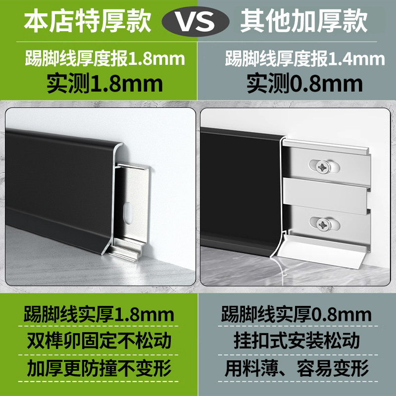 铝合金踢脚线加厚轻奢奶油风地脚线家用6cm金属贴脚线地角线美缝