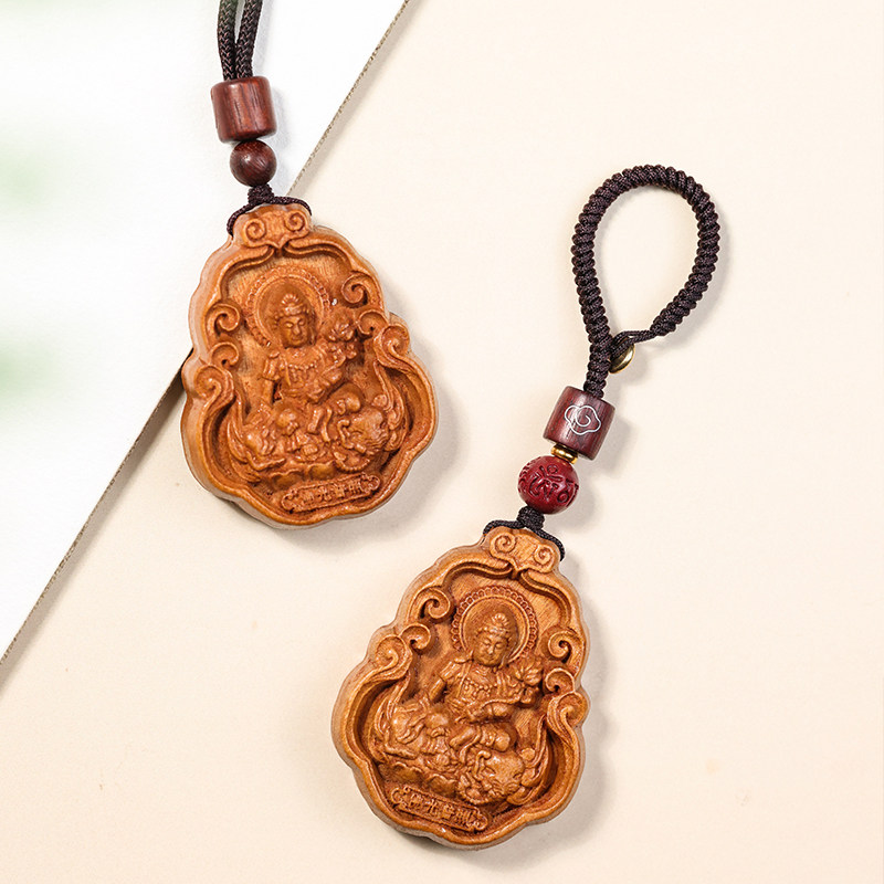 天然老桃木属相吊坠男士本命年女本命佛生肖挂件2025蛇年普贤菩萨