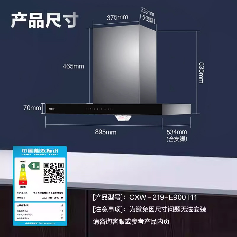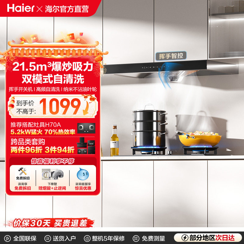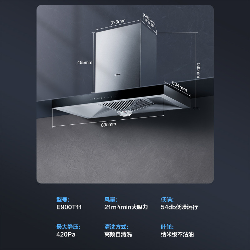海尔T11顶吸欧式大吸力脱排自清洁家用厨房吸排抽油烟机官方旗舰