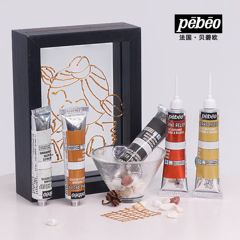 法国pebeo贝碧欧进口玻璃颜料勾线笔亚克力平面DIY彩绘陶瓷金属3D立体手机壳手绘浮雕沥粉隔离条装饰防水涂鸦