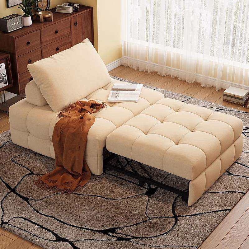 奶油风猫抓布沙发床小户型客厅伸缩多功能两用可折叠布艺单人沙发