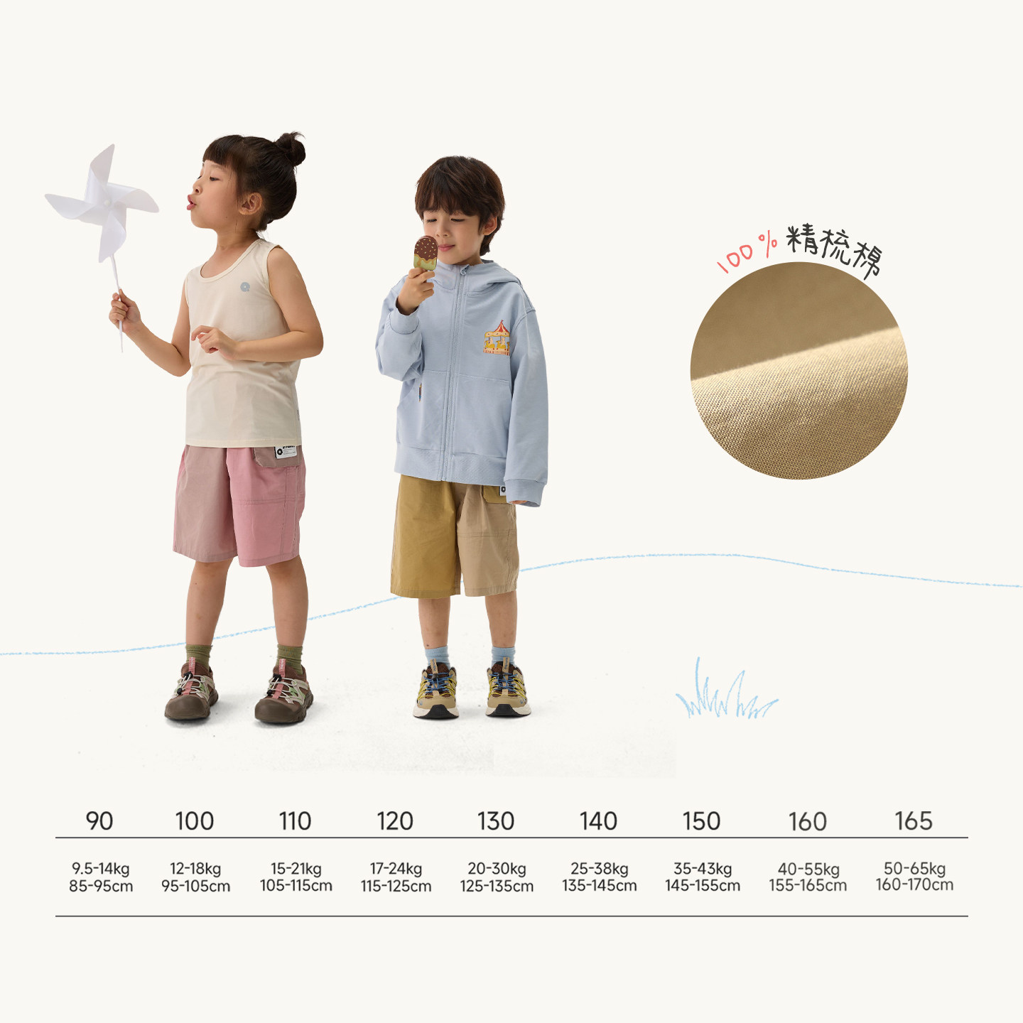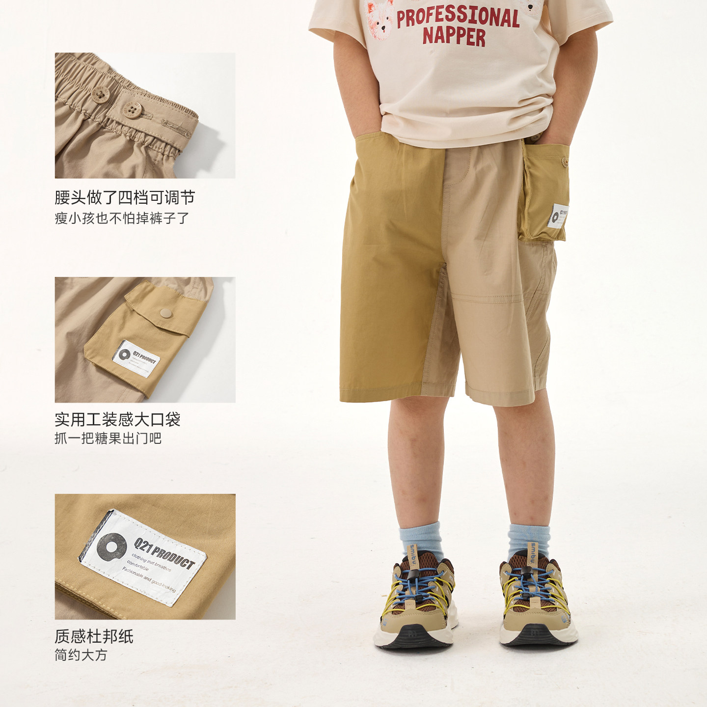 Q21纯棉府绸工装短裤儿童裤子男女童春夏运动耐磨可调节休闲裤