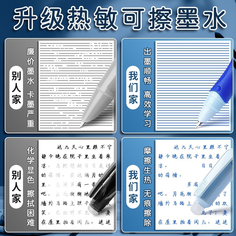 钢笔小学生专用晨光热可擦儿童可擦三年级蓝黑墨囊优握练字初学者四年级刚笔暗尖0.38正姿学生用晶蓝热敏墨蓝