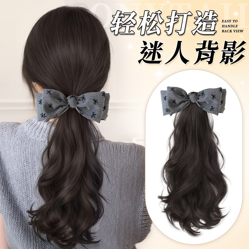 假发马尾女仿真发自然低扎层次卷格雷系蝴蝶结抓夹假发辫辫子造型