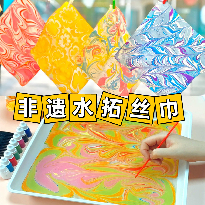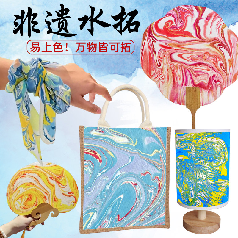 水拓画丝巾diy材料包真丝扎染拓印手工团扇帆布包沙龙暖场非遗