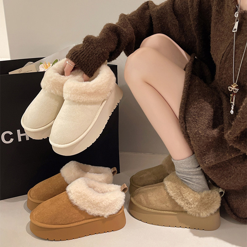 低帮厚底雪地靴女2025新款冬季懒人一脚蹬毛毛棉鞋加绒加厚女鞋子