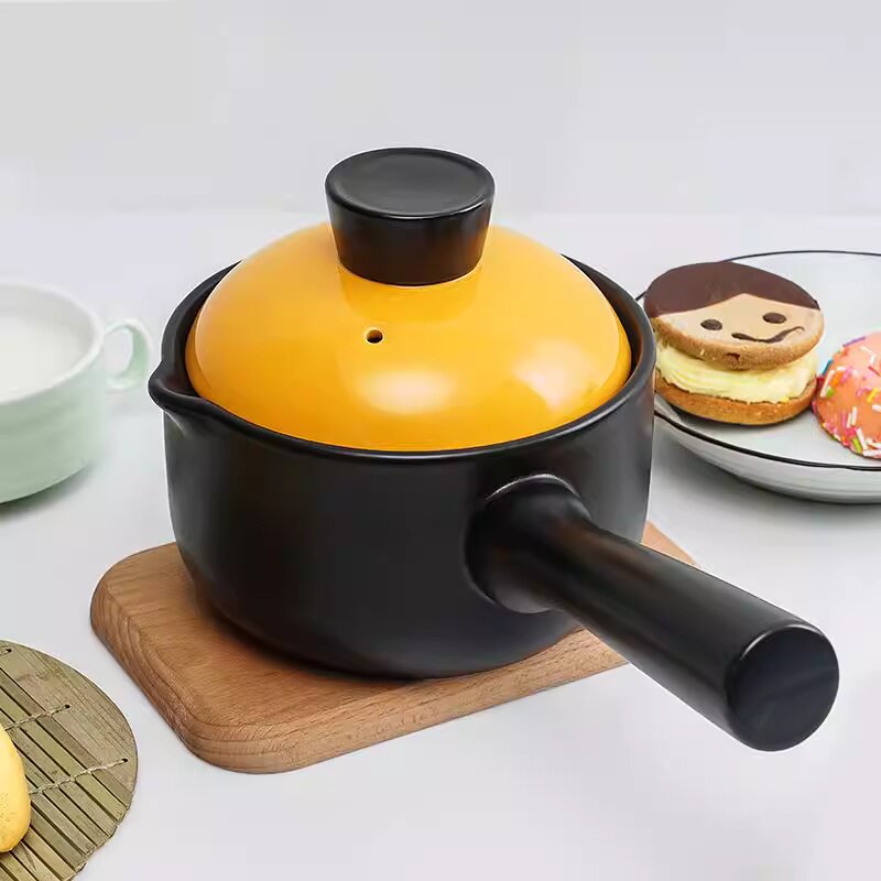 陶瓷小砂锅奶锅煮粥泡面锅无涂层婴儿辅食锅带盖 1.4L黑锅单柄