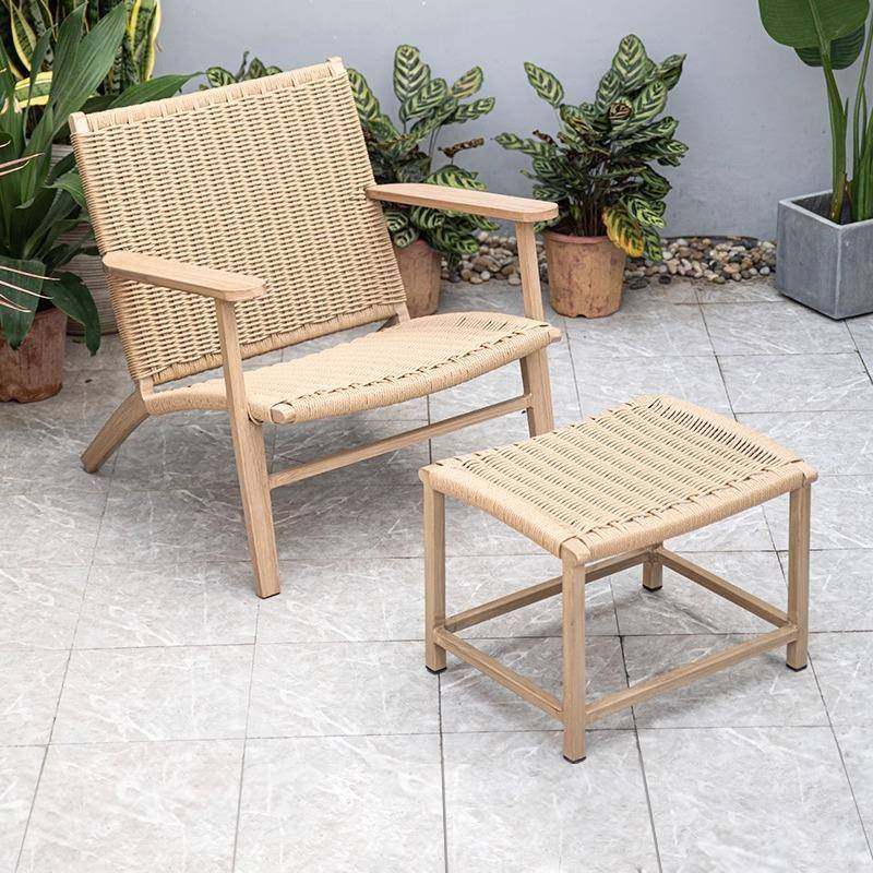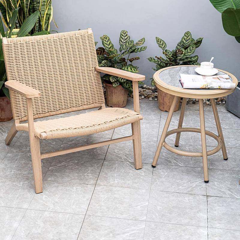 户外田园风艺术藤编阳台庭院室外露台露天阳光房实木柚木组合桌椅