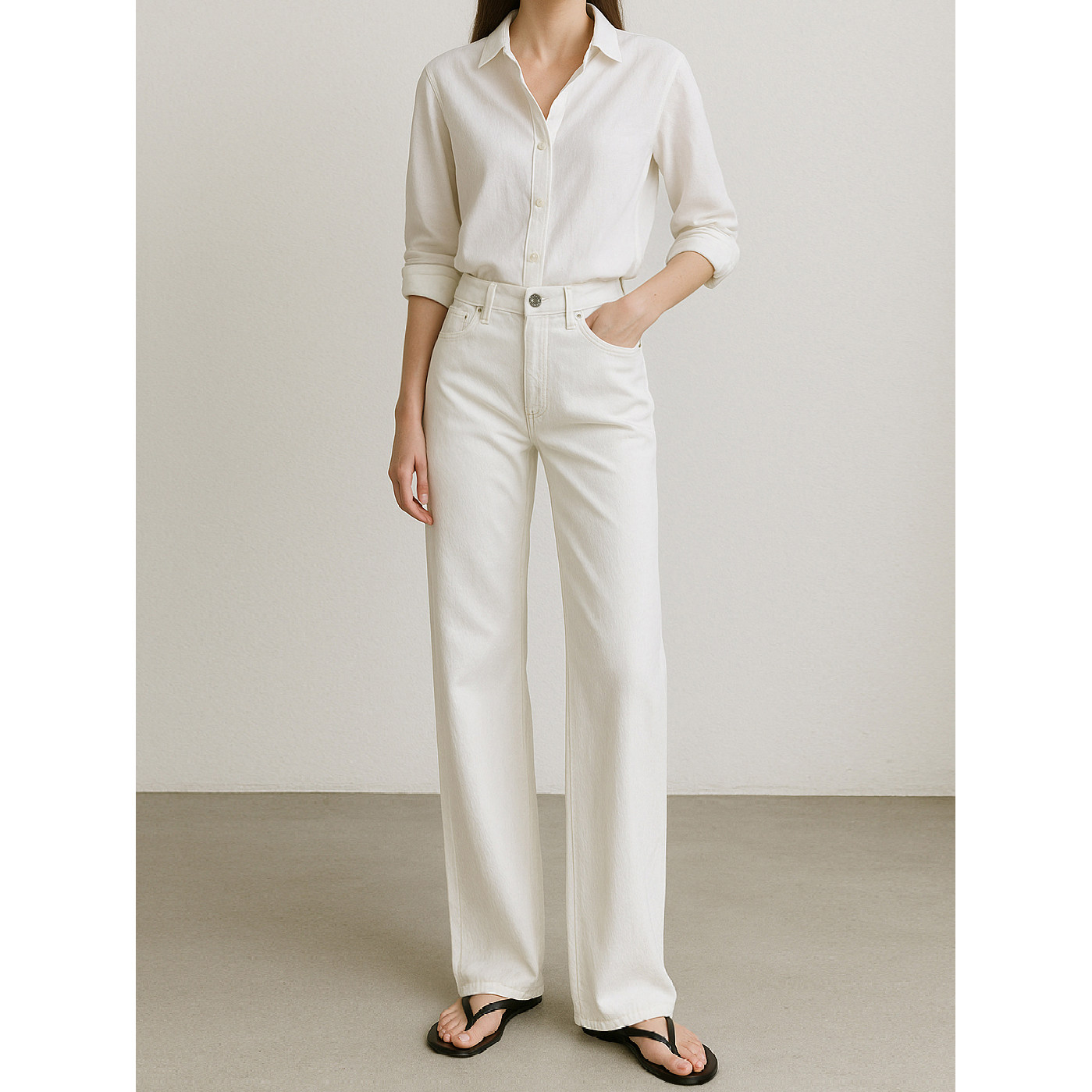 森柔牛仔|森马阔腿牛仔裤女2025秋冬白色牛仔裤简约女士高腰裤子