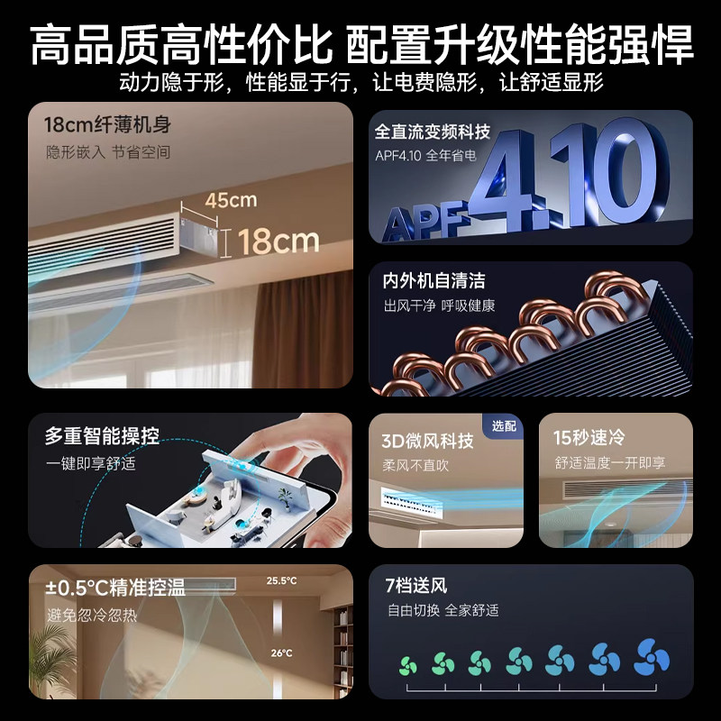 志高空调大3P5P变频1级冷暖家用商用超薄隐藏嵌入式卡机风管机
