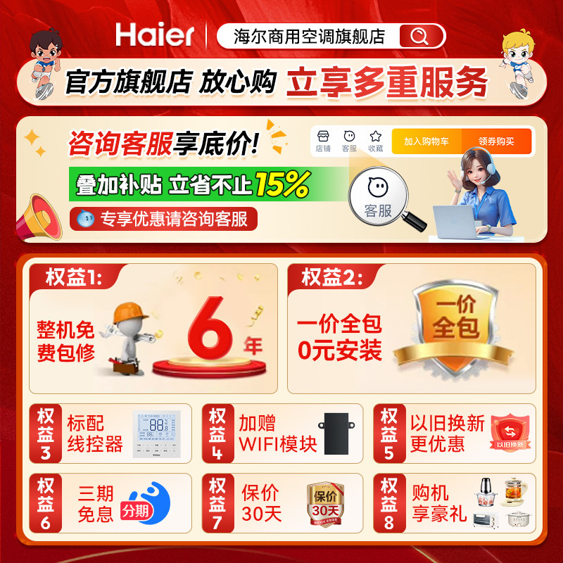 海尔出品统帅中央空调超省电3P4P风管机一拖一客厅一价全包