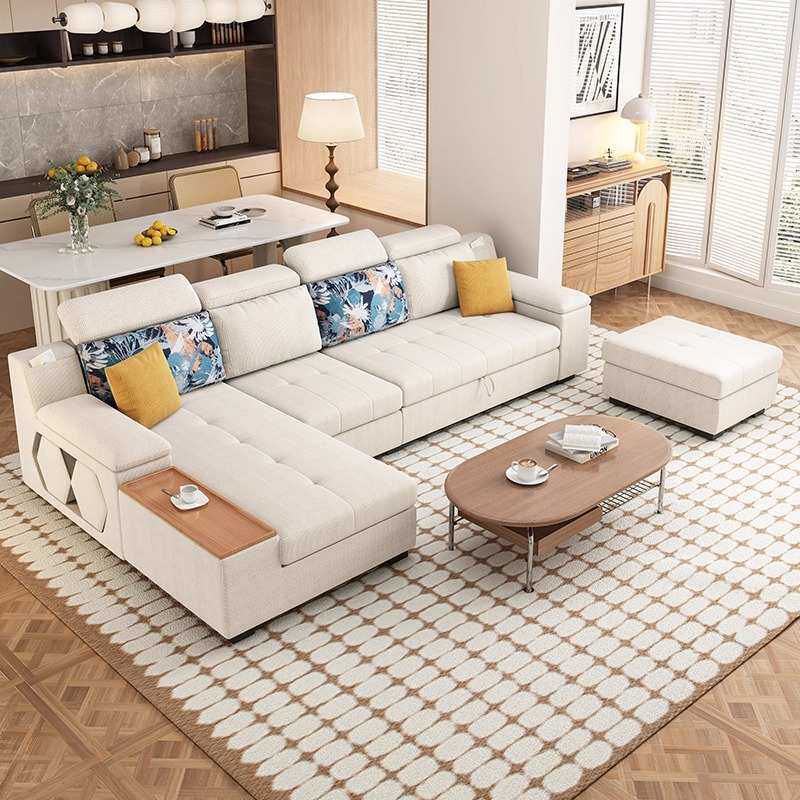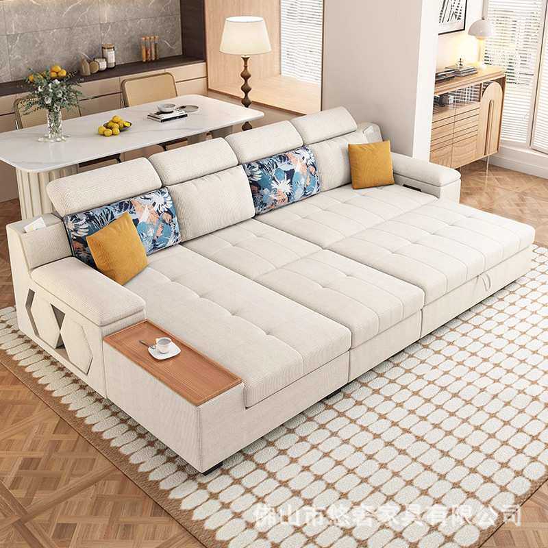棉麻折叠多功能沙发布艺简约现代客厅组合贵妃储物抽拉两用沙发床