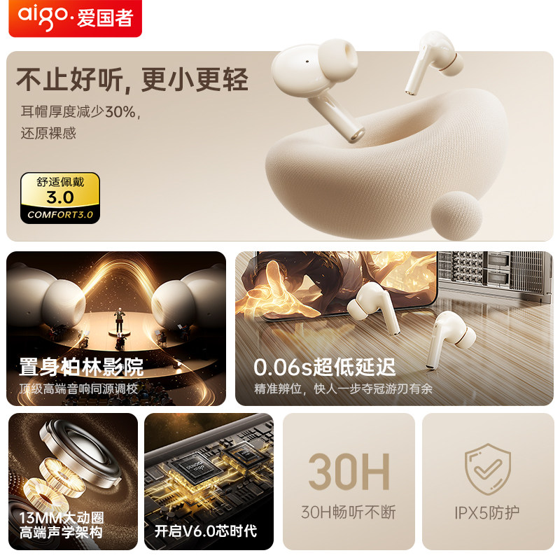 爱国者蓝牙耳机入耳式无线2026新款降噪运动跑步超长续航官方正品