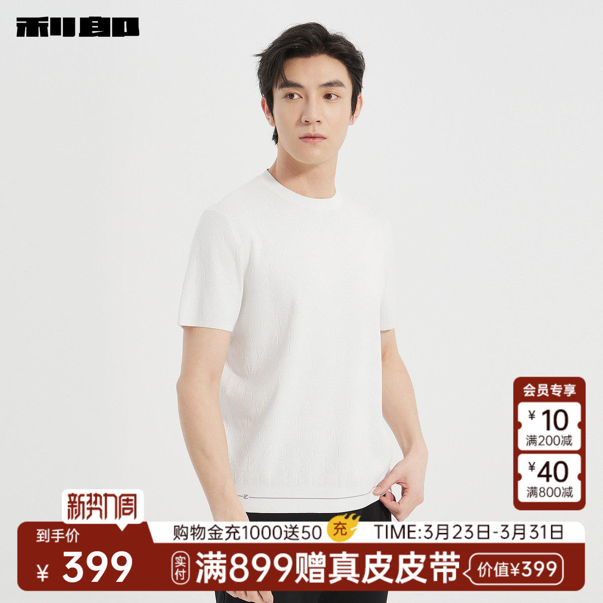 【肌理提花】利郎官方 针织短袖T恤男士休闲圆领夏季新款上衣男装